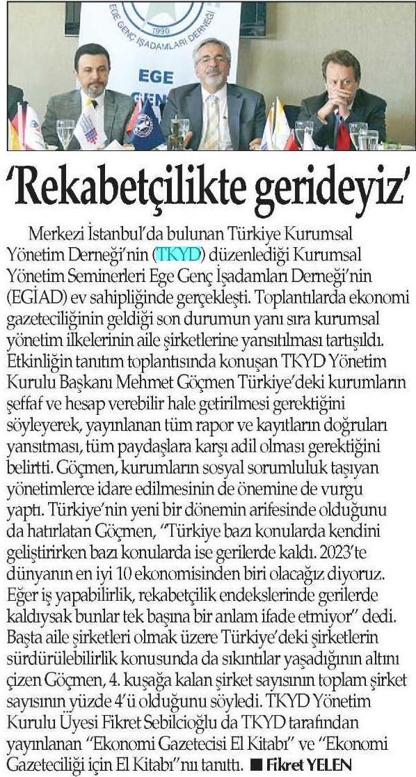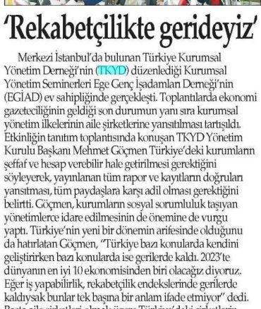 “Rekabetçilikte Gerideyiz” İzmir Yenigün, 28 Mayıs 2013