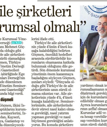 Aile Şirketleri Kurumsallaşmalı İzmir Dokuz Eylül, 28 Mayıs 2013