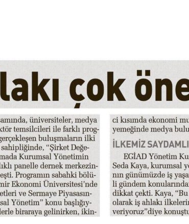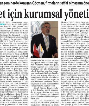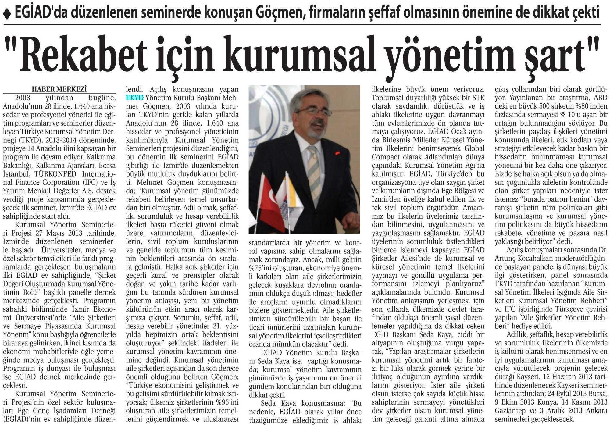 EGİA”Rekabet İçin Kurumsal Yönetim Şart”D’ta Kurumsal Yönetim Tartışıldı İzmir Ticaret, 29 Mayıs 2013