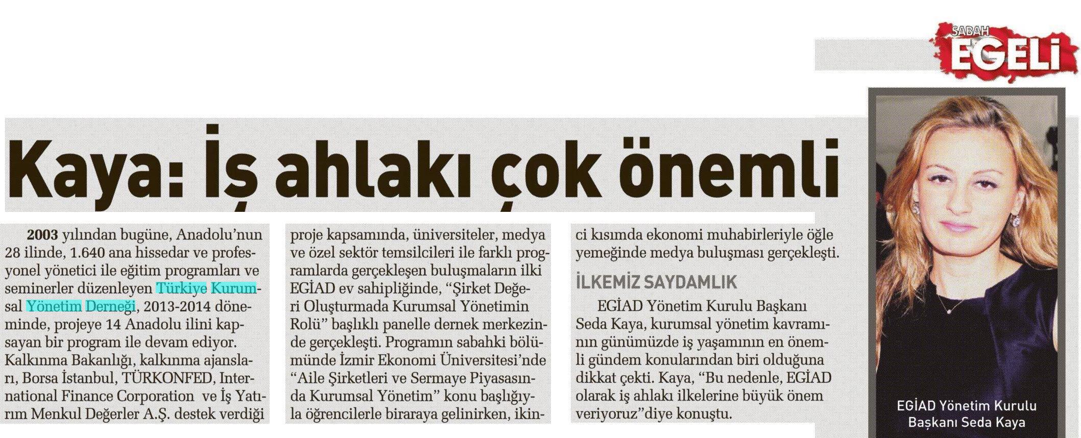 Kaya: İş Ahlakı Çok Önemli Sabah Egeli, 29 Mayıs 2013