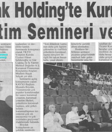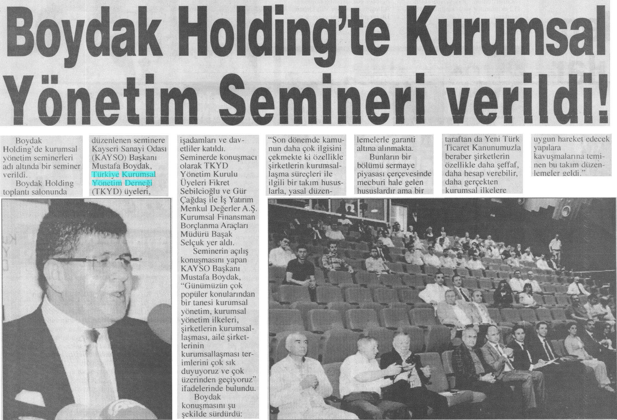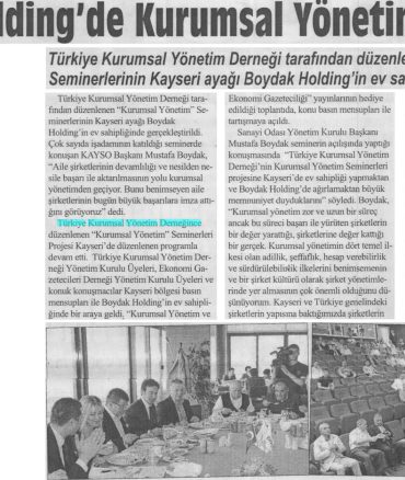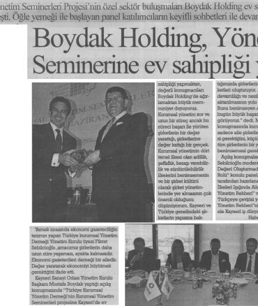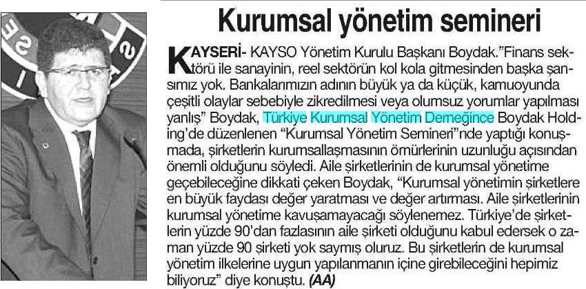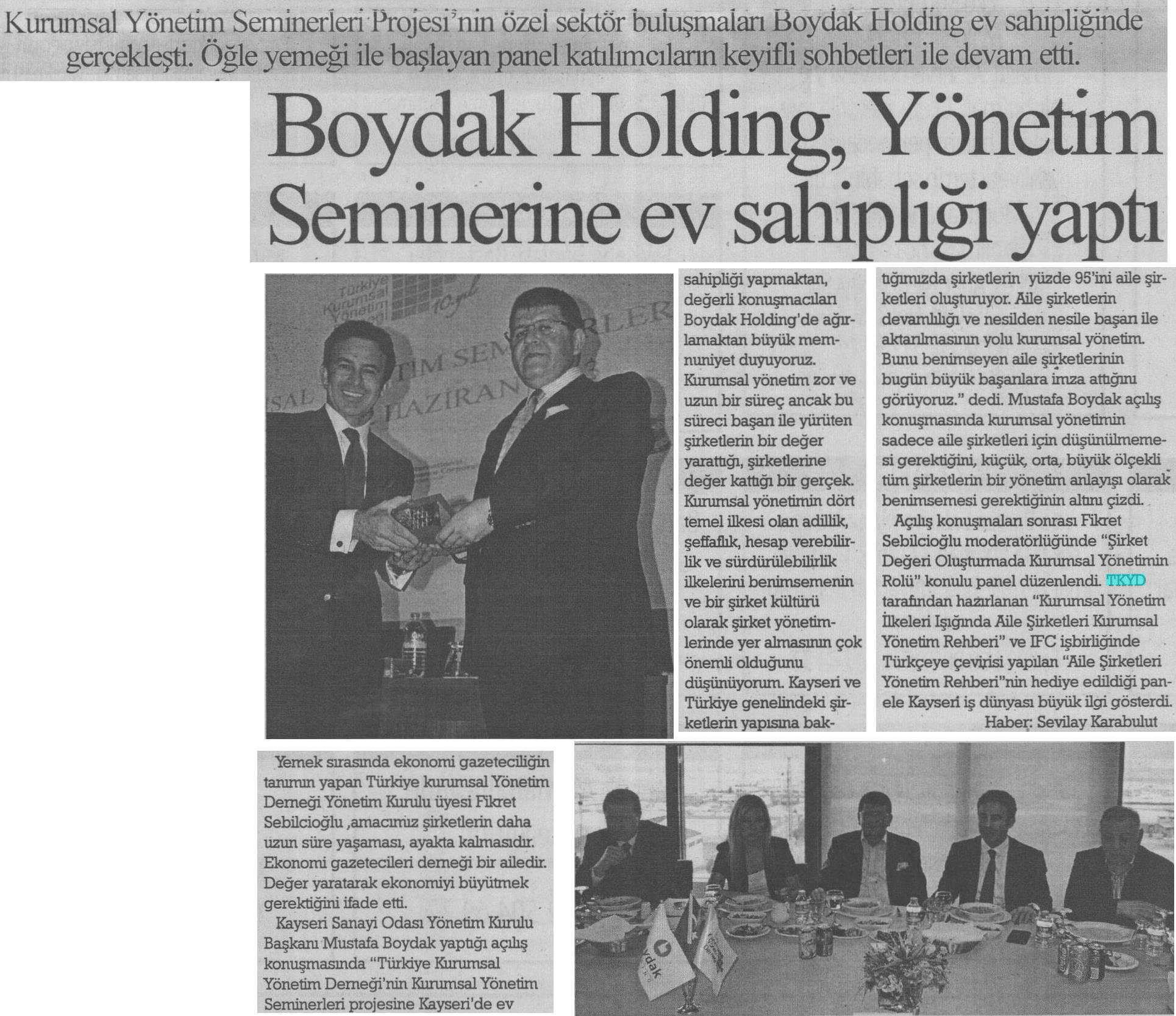 Boydak Holding’te Kurumsal Yönetim Semineri Kayseri Yeni Haber, 13 Haziran 2013