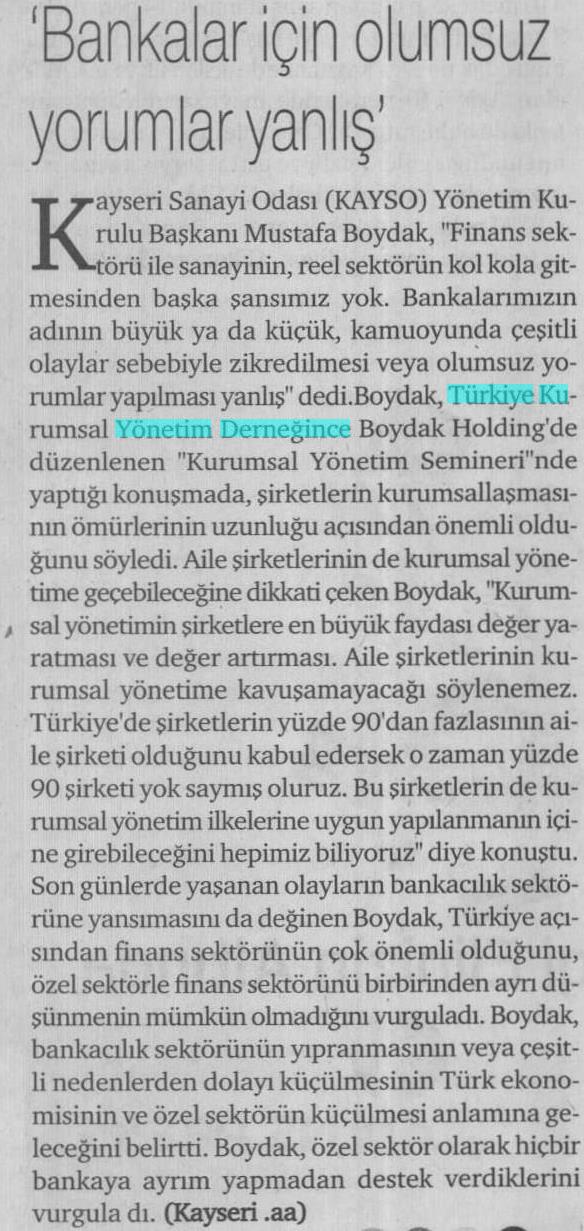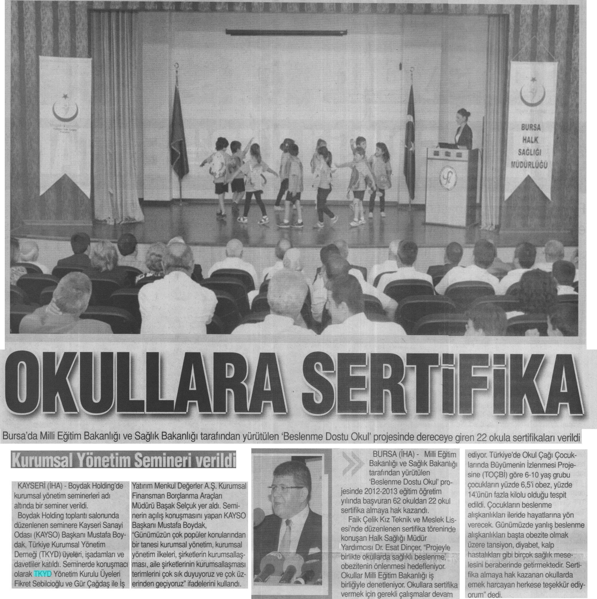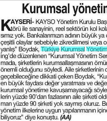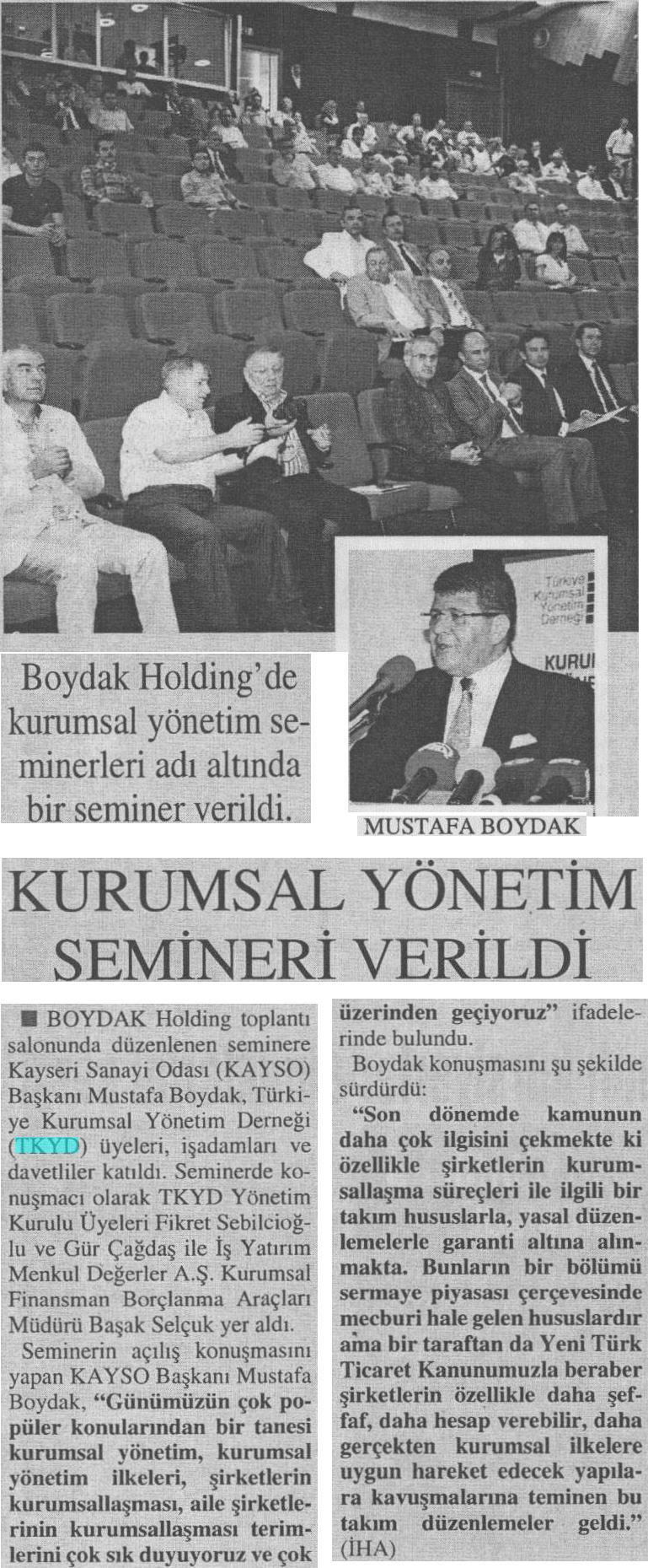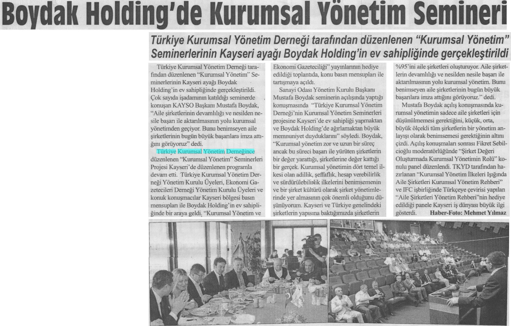 Boydak Holding’te Kurumsal Yönetim Semineri Kayseri Yeni Haber, 13 Haziran 2013