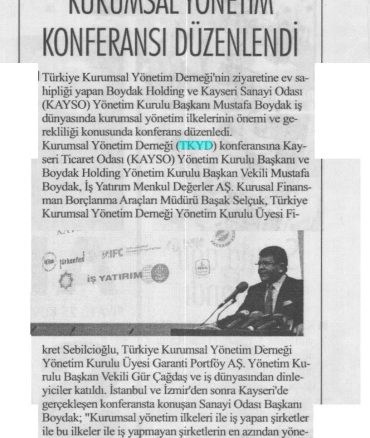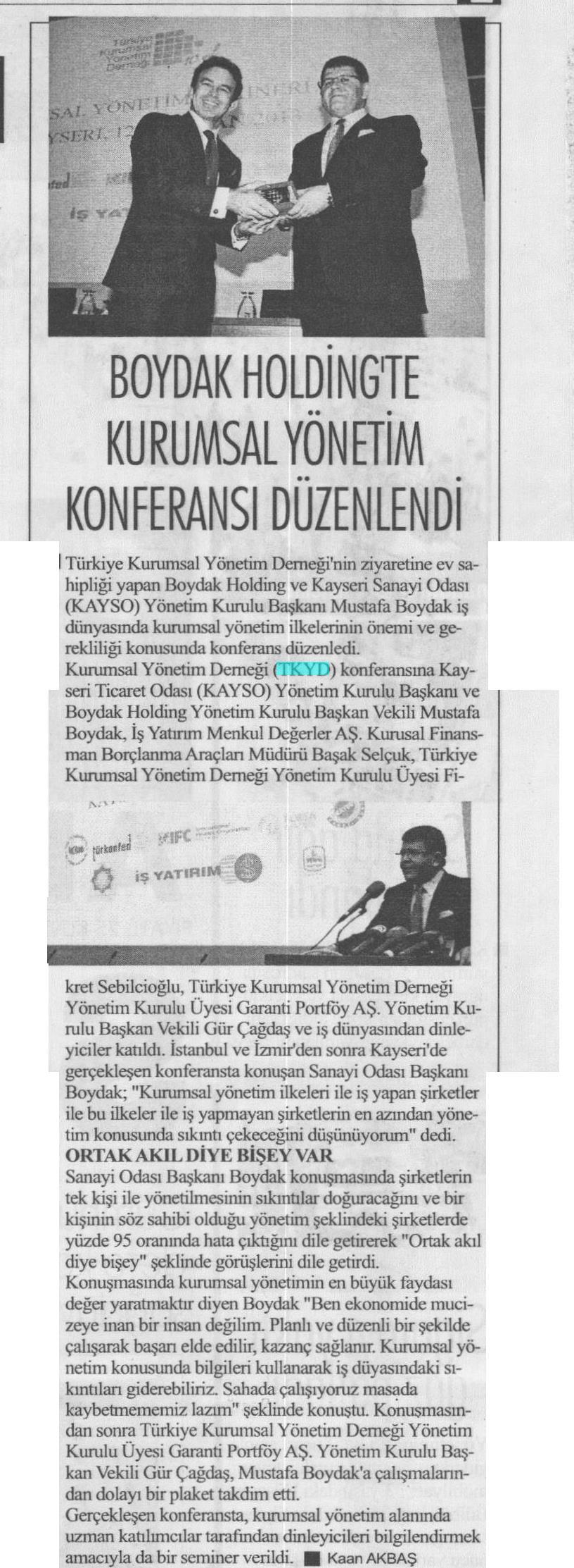 Boydak Holding’te Kurumsal Yönetim Konferansı Kayseri Anadolu, 13 Haziran 2013
