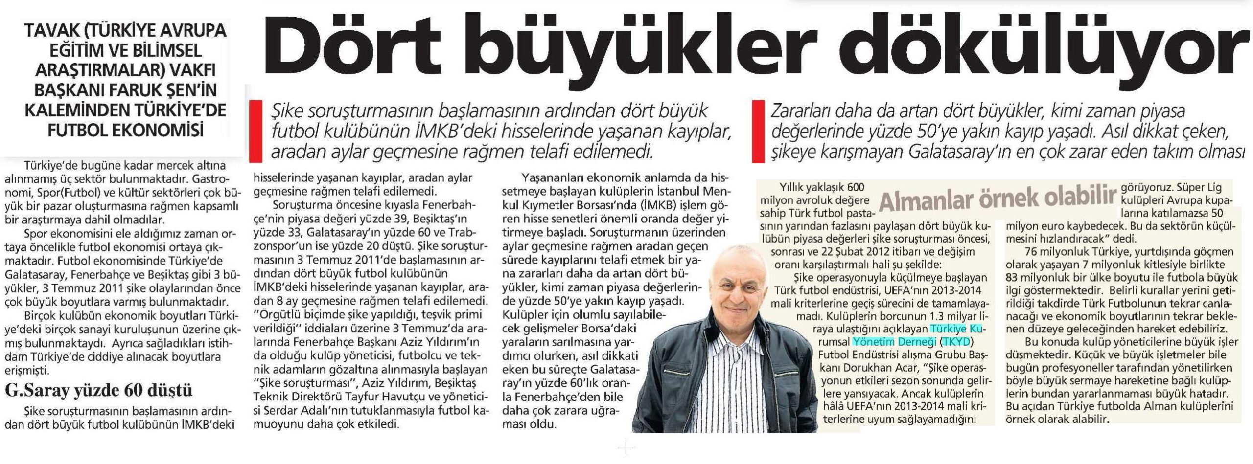 Dört Büyükler Dökülüyor Milliyet, 16 Temmuz 2013