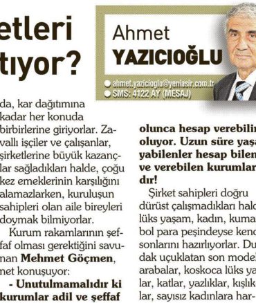 Patronlar Artık Şeffaflık İstiyor Yurt Gazetesi, 16 Ocak 2013