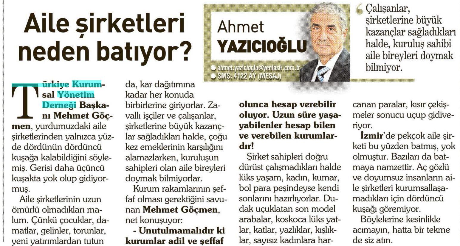 Aile Şirketleri Neden Batıyor Yeni Asır, 27 Temmuz 2013