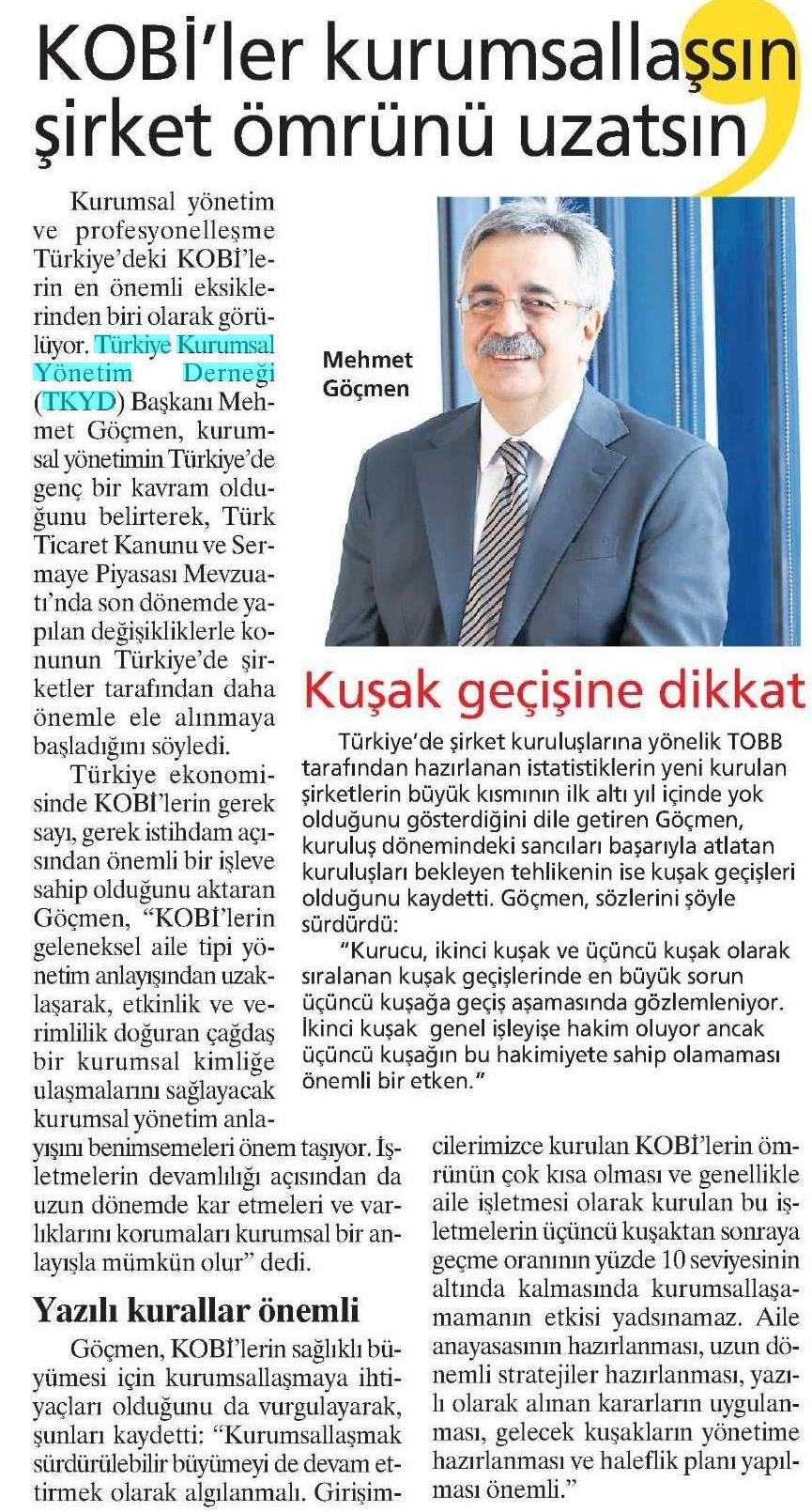 KOBİ’ler Kurumsallaşsın Şirket Ömrünü Uzatsın Milliyet, 27 Ağustos 2013