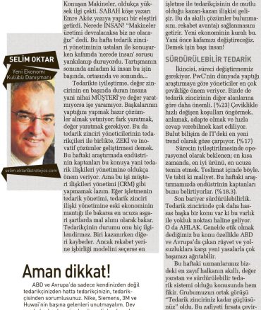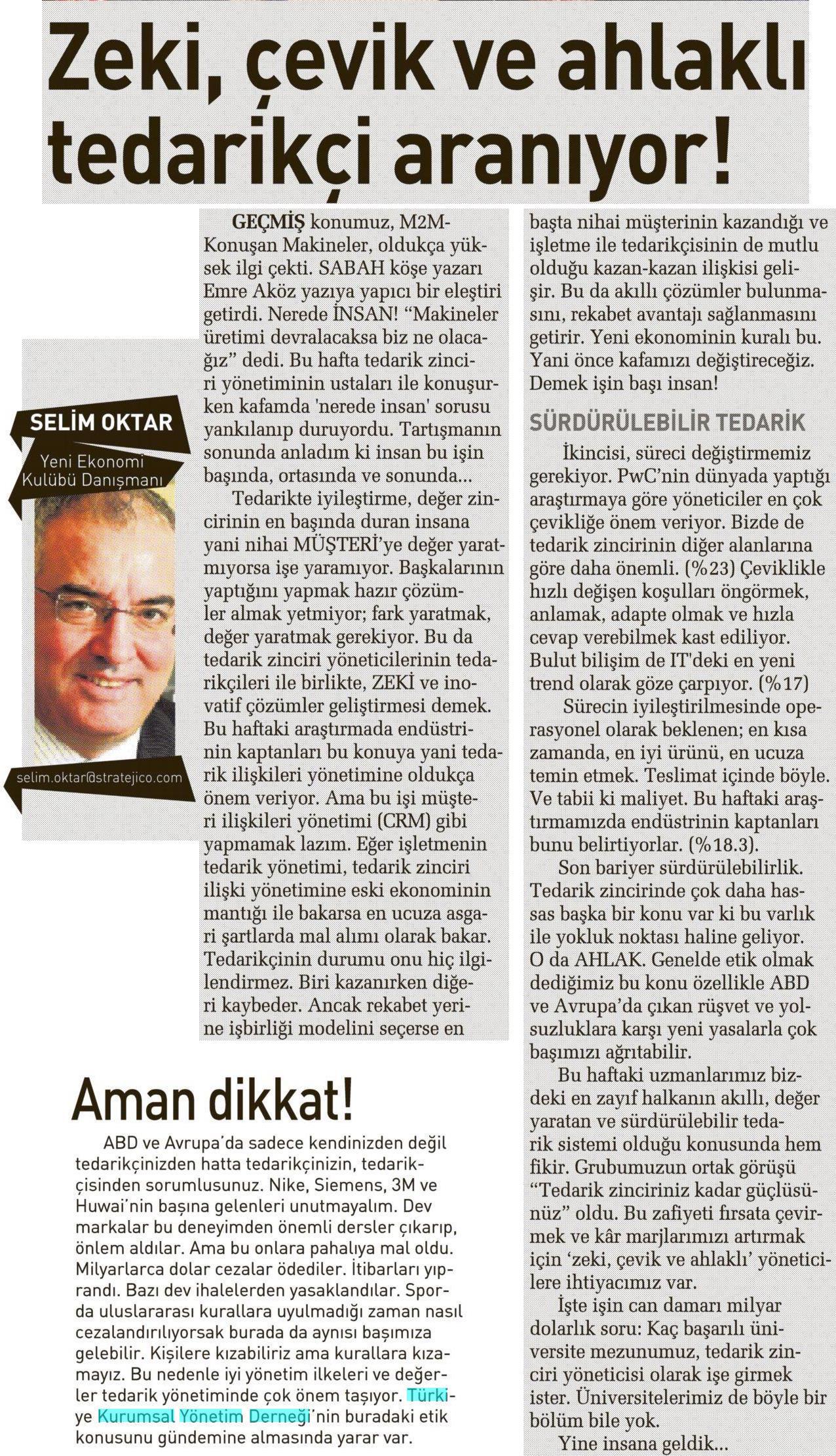 Zeki, Çevik ve Ahlaklı Tedarikçi Aranıyor Sabah, 22 Eylül 2013