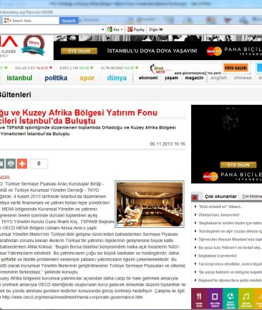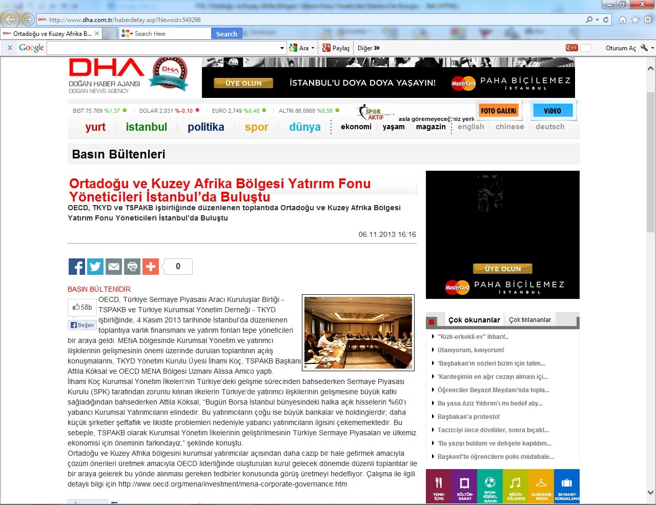 Ortadoğu ve Kuzey Afrika Bölgesi Yatırım Fonu Yöneticileri İstanbul’da Buluştu dha.com.tr, 6 Kasım 2013
