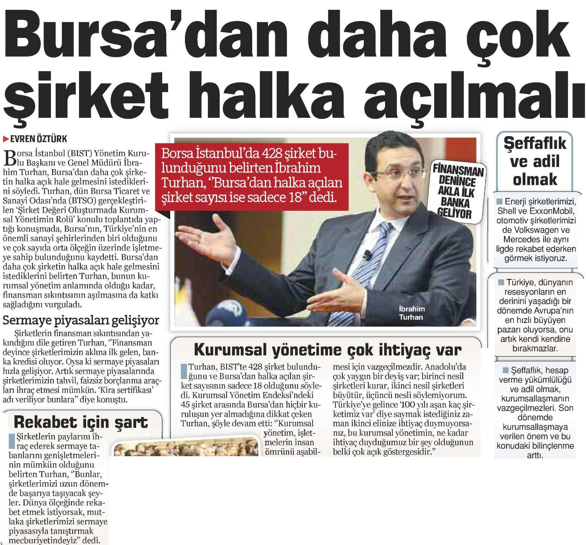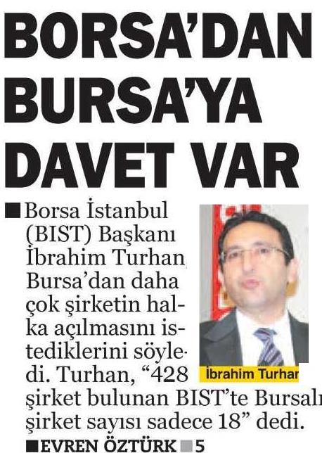 Bursa’dan Daha Çok Şirket Halka Açılmalı Bursa Olay, 28 Kasım 2013