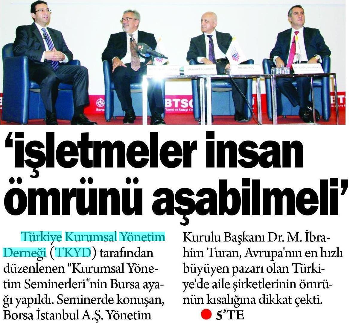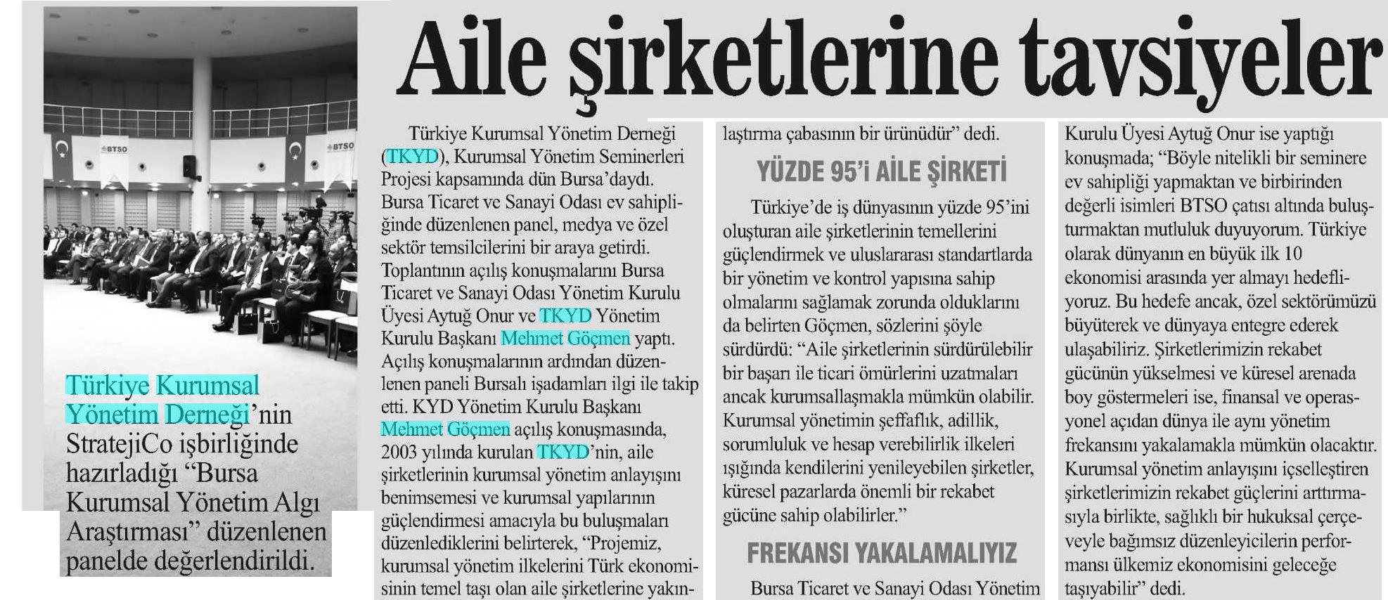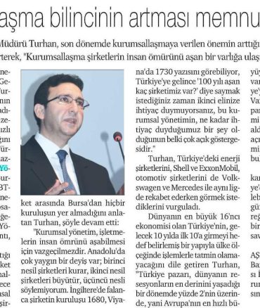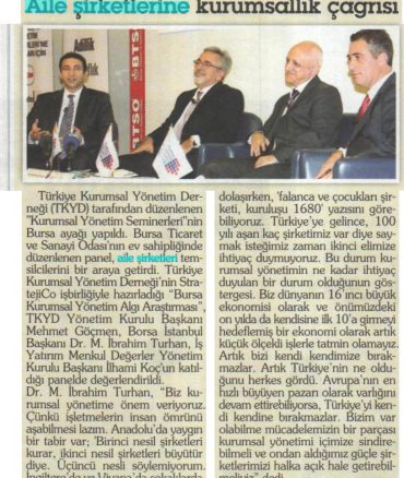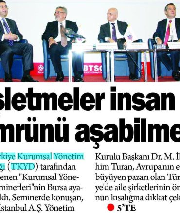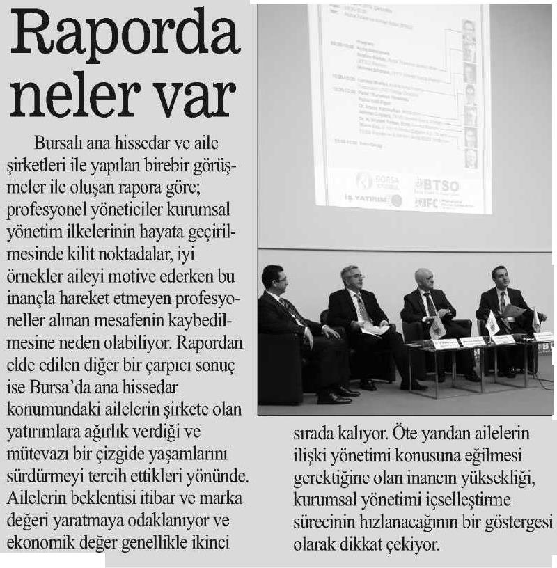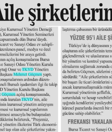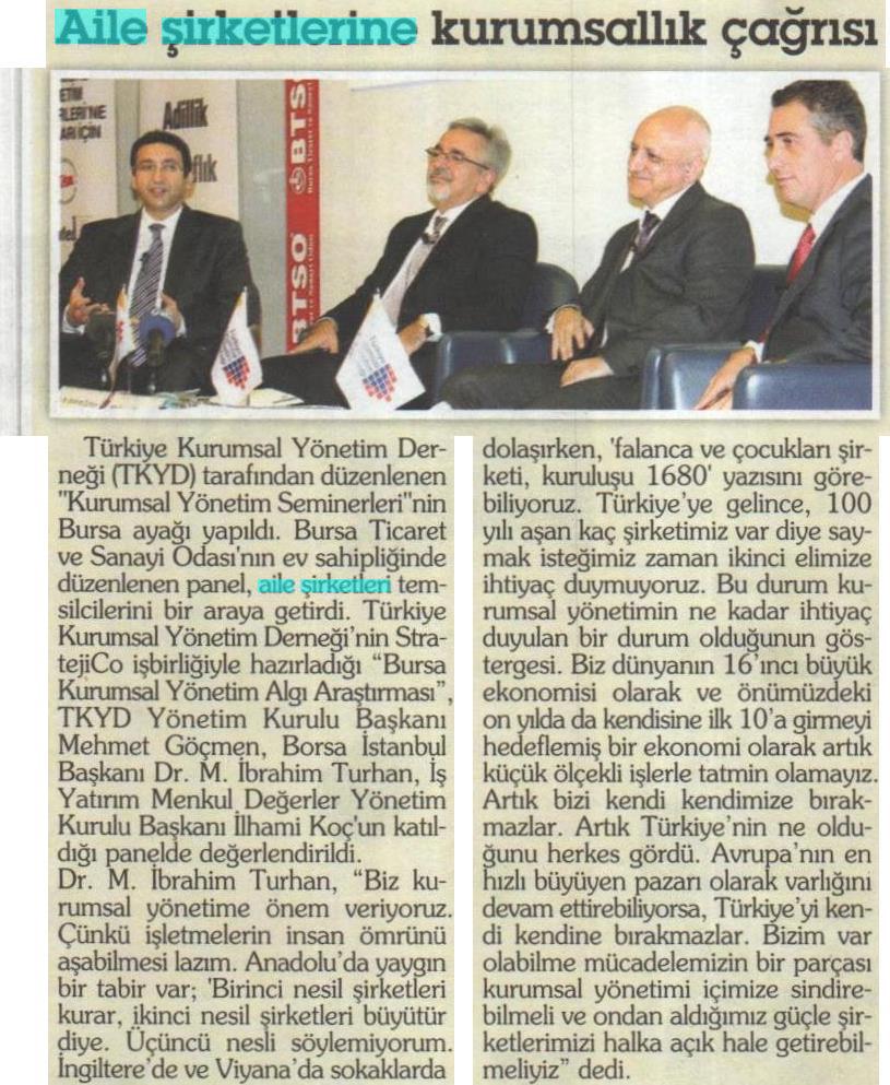 Aile Şirketlerine Kurumsallık Çağrısı Bursa Şehir, 3 Aralık 2013