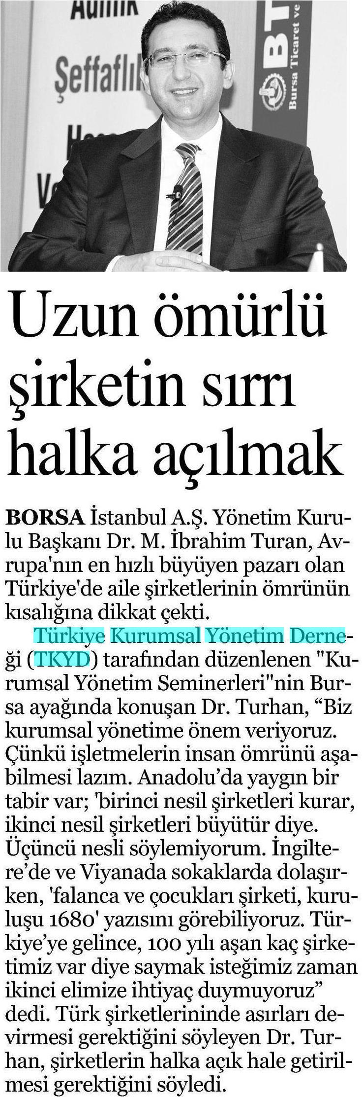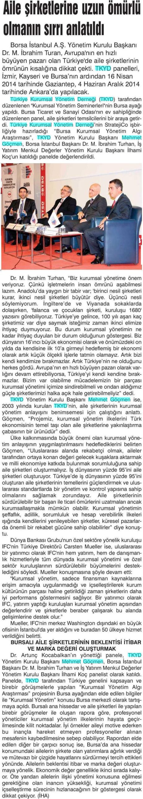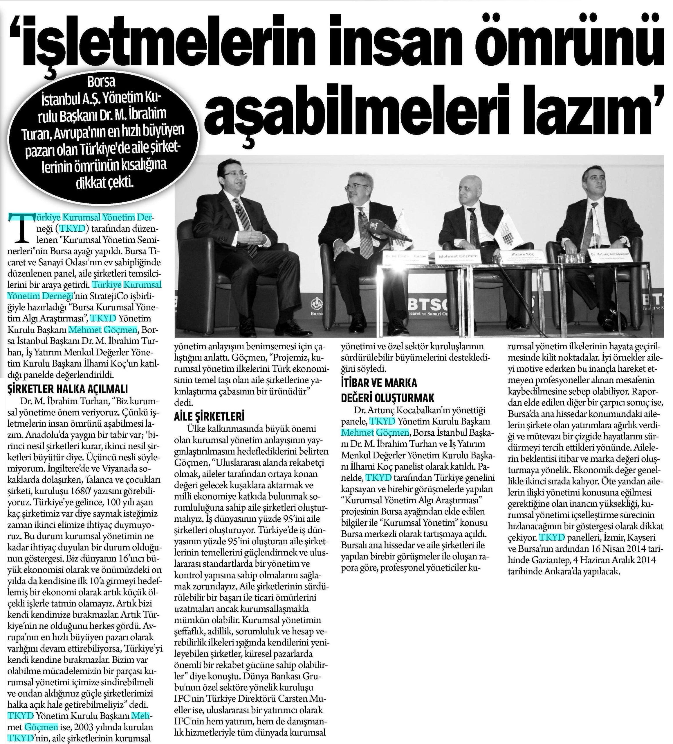 Aile Şirketlerine Kurumsallık Çağrısı Bursa Şehir, 3 Aralık 2013