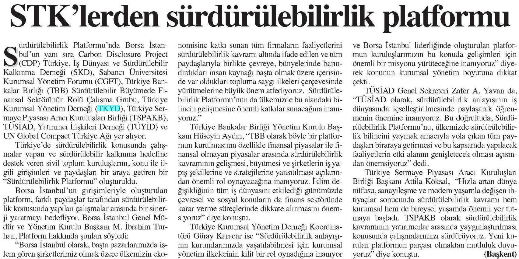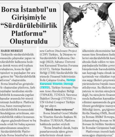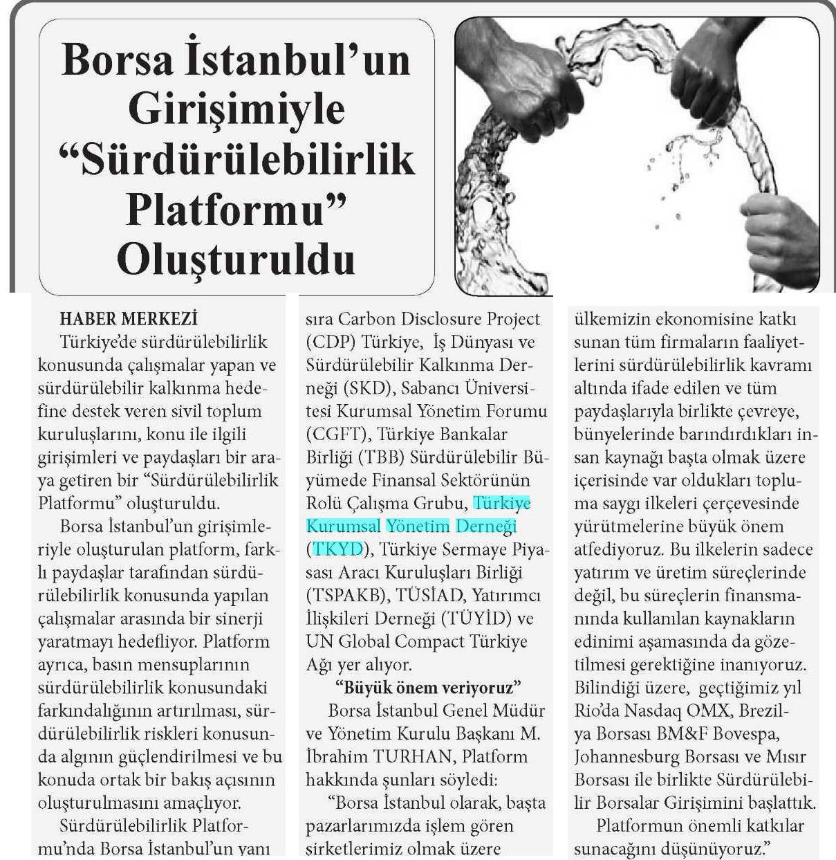 “Borsa İstanbul”un Girişimiyle Sürdürülebilirlik Platformu Oluşturuldu İzmir Yeni Ekonomi, 3 Aralık 2013