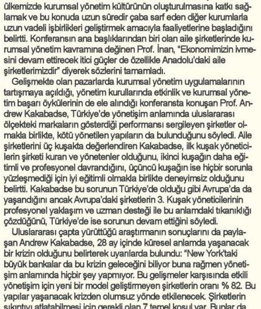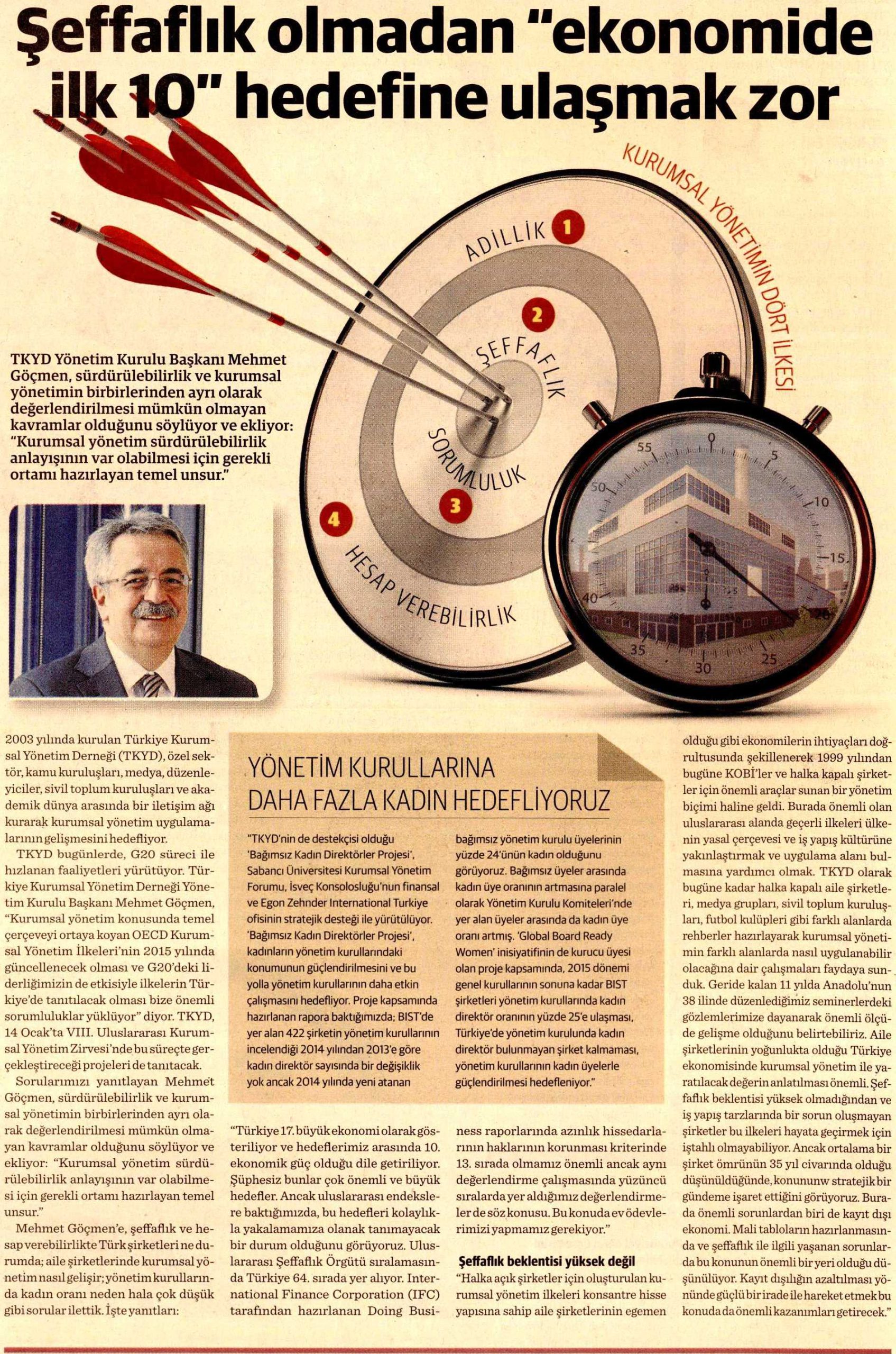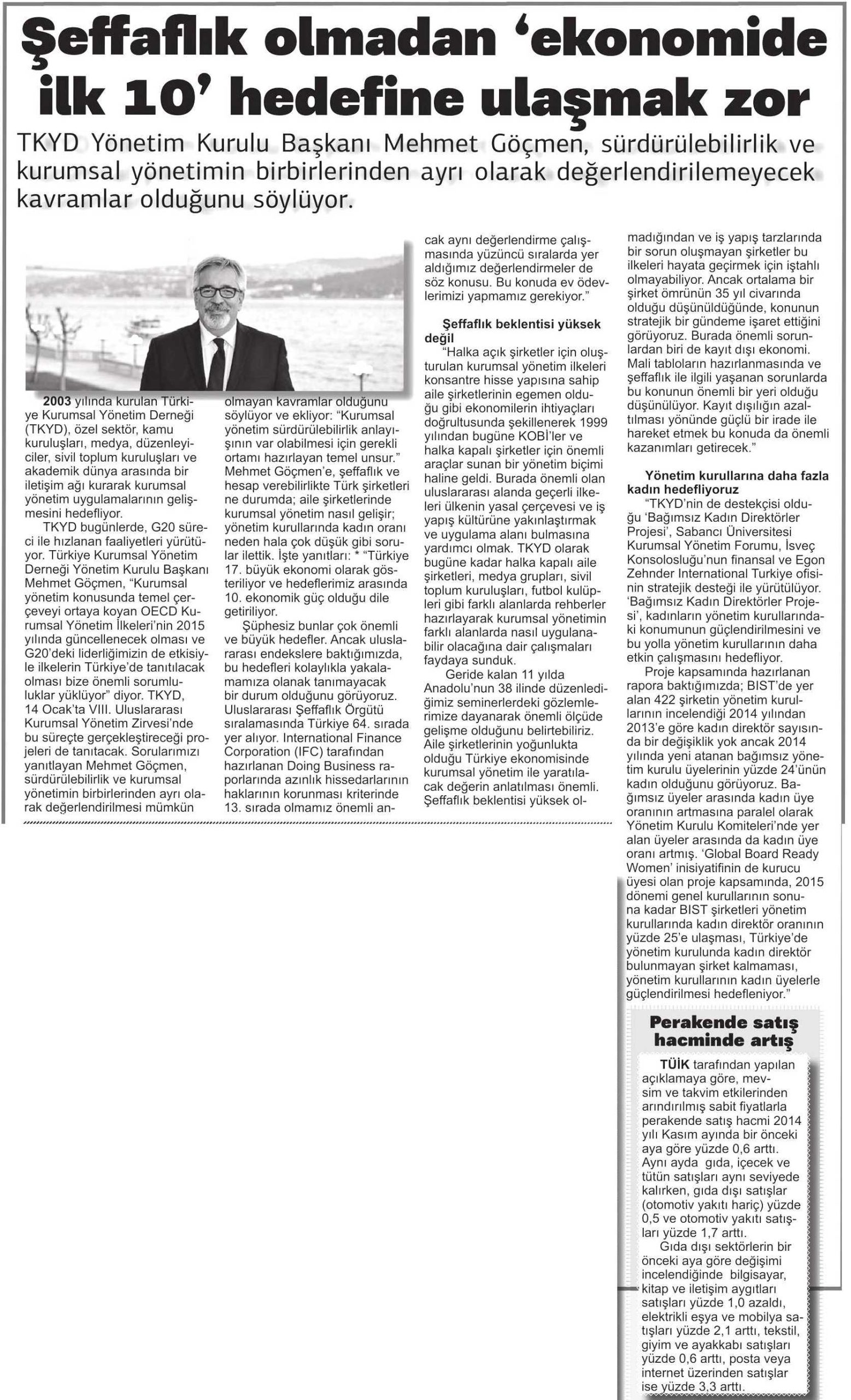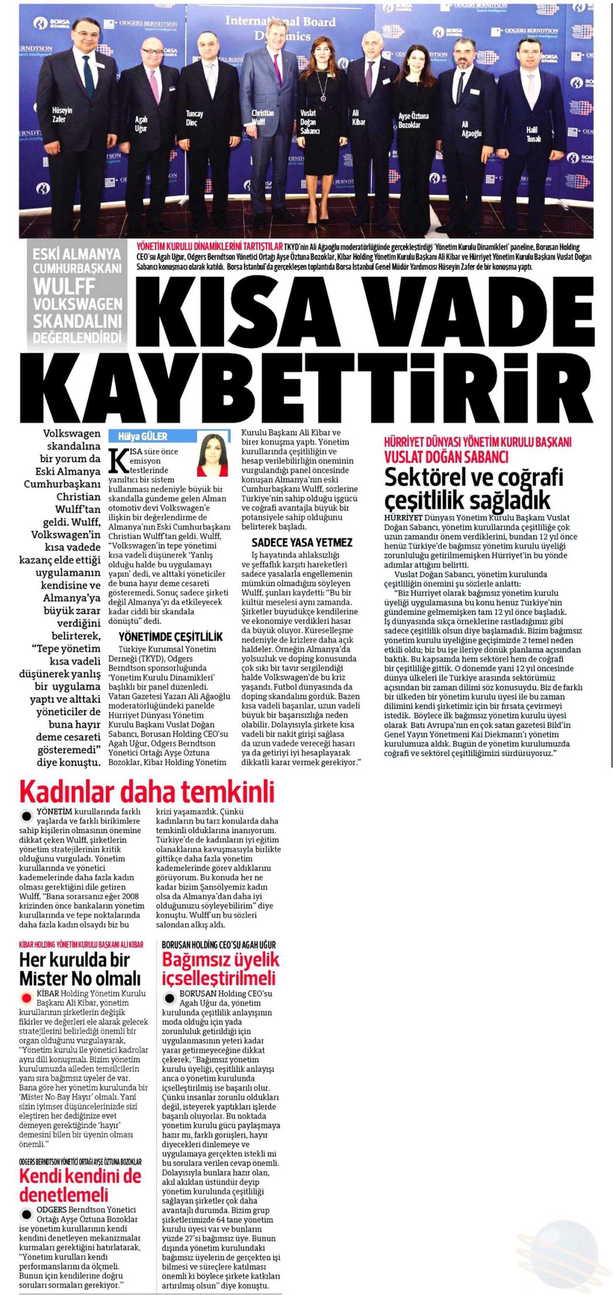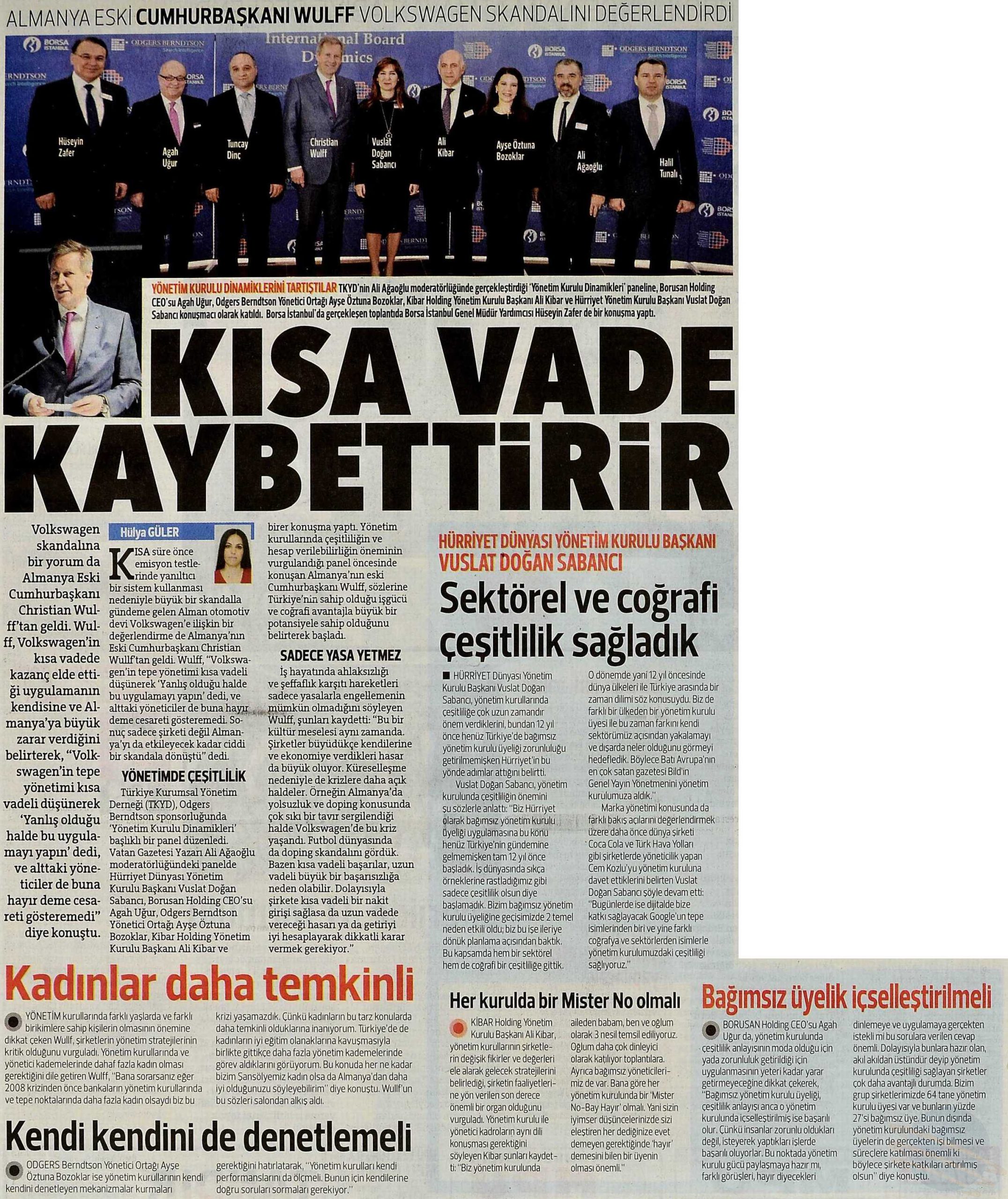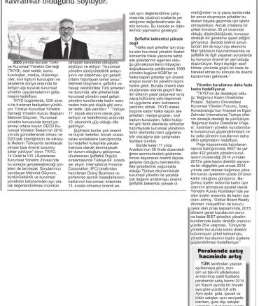 Şirketlere Etkili Yönetişim Gerekiyor Hürriyet, 10 Ekim 2015
