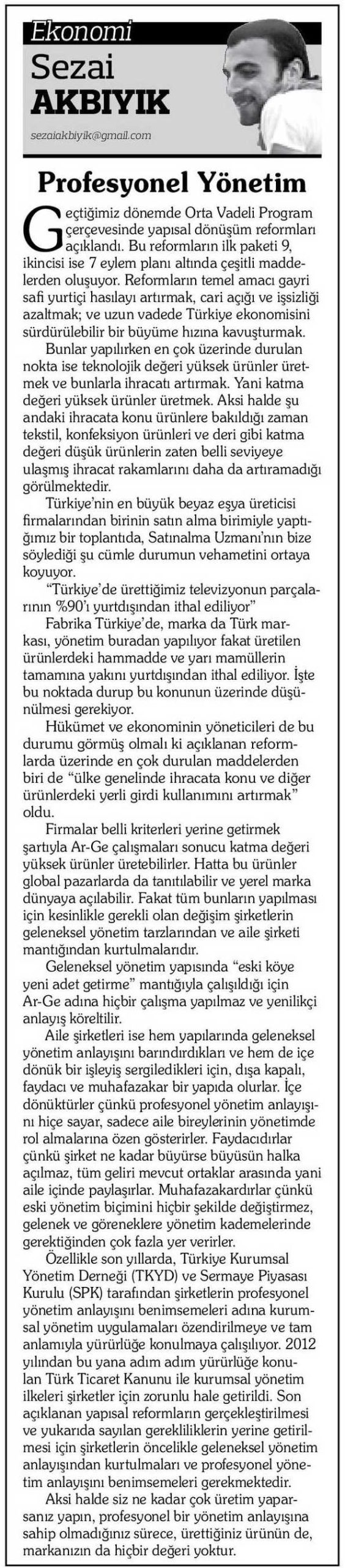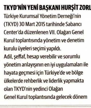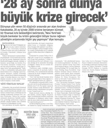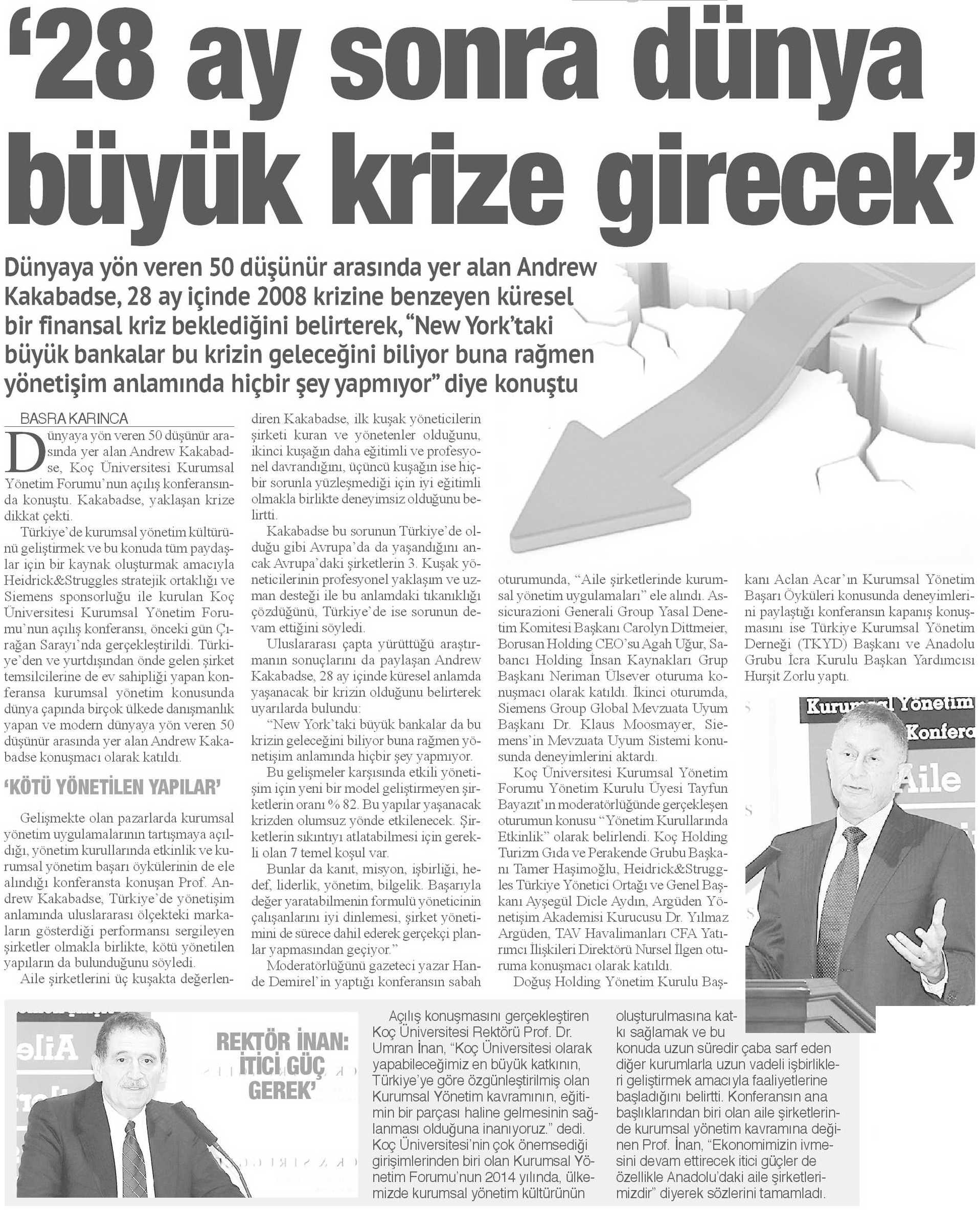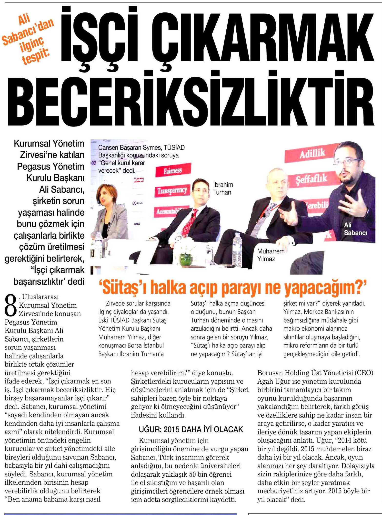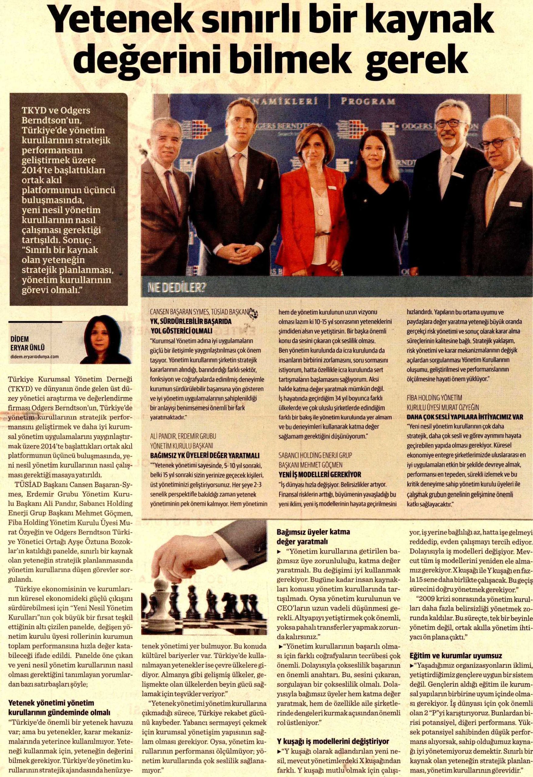 Şirketlere Etkili Yönetişim Gerekiyor Hürriyet, 10 Ekim 2015