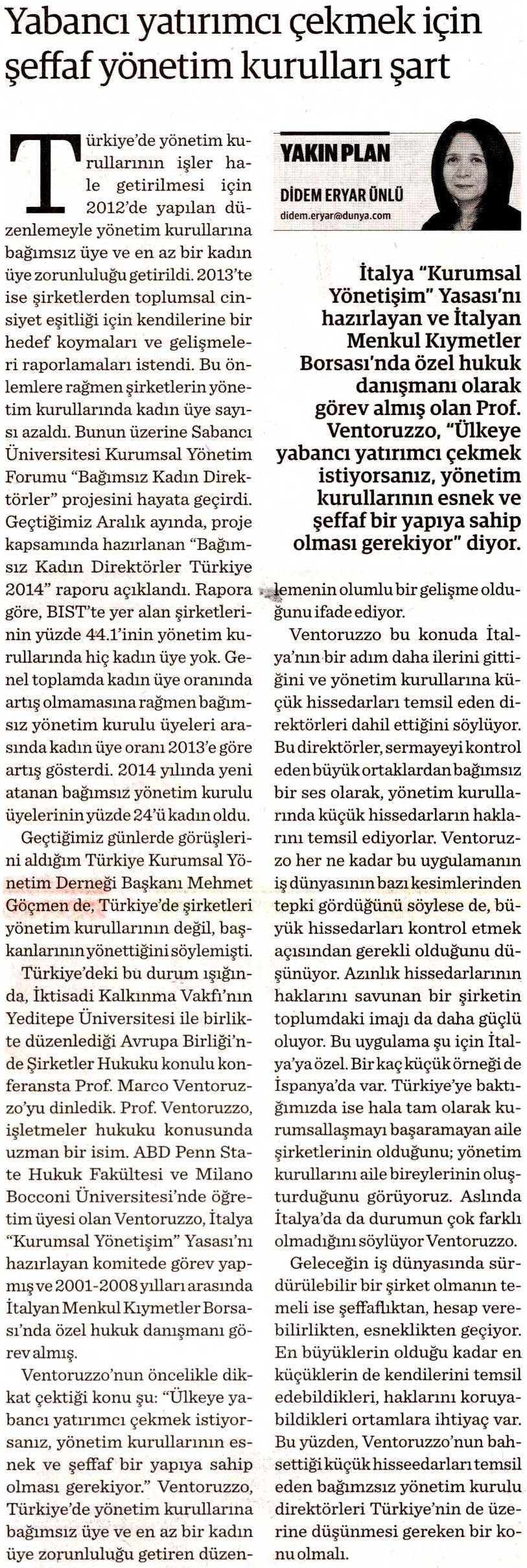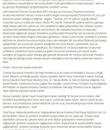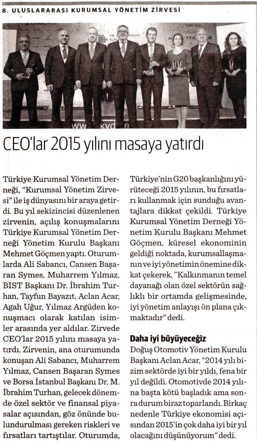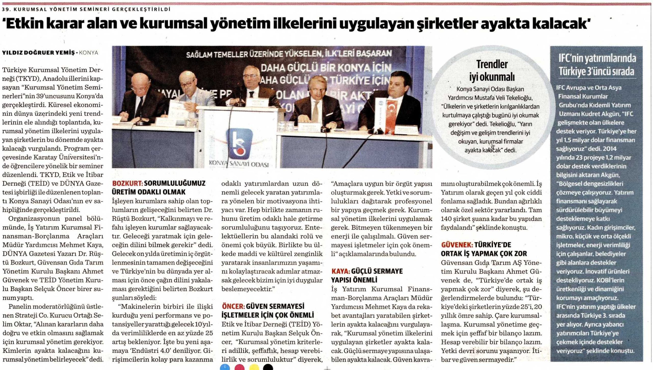 ‘Etkin Karar Alan ve Kurumsal Yönetim İlkelerini Uygulayan Şirketler Ayakta Kalacak’ Dünya, 22 Mayıs 2015