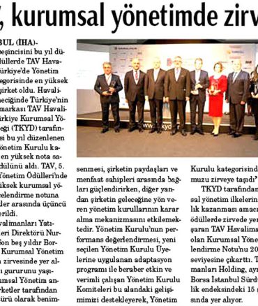 TAV, Kurumsal Yönetimde Zirvede Zafer, 16 Ocak 2015