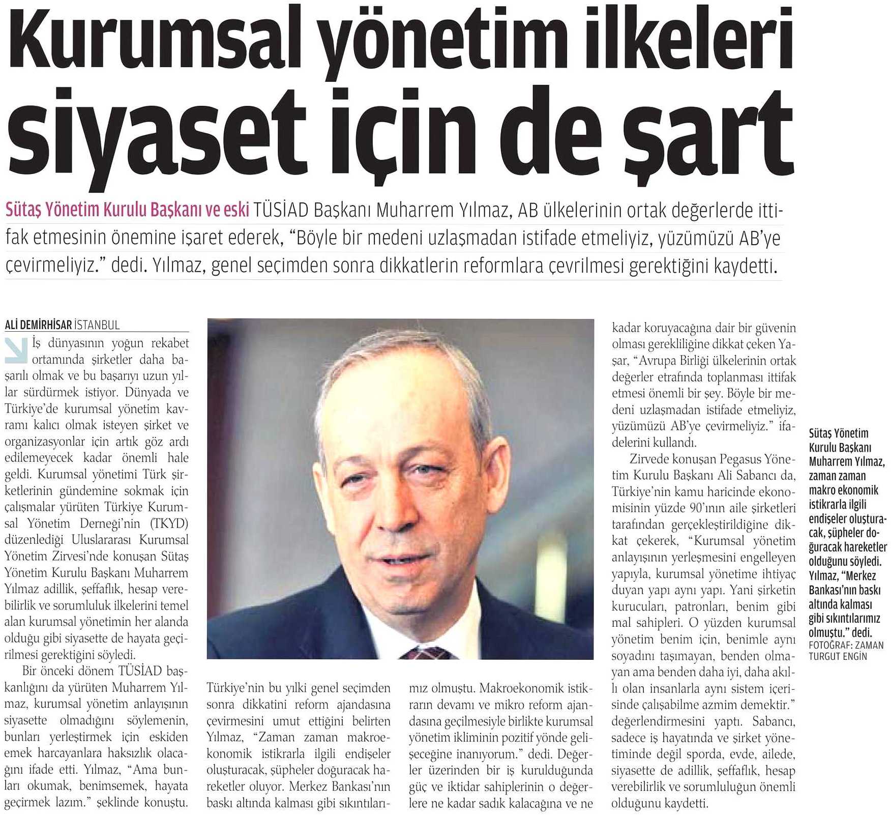 Kurumsal Yönetim İlkeleri Siyaset İçin De Şart Zaman, 17 Ocak 2015