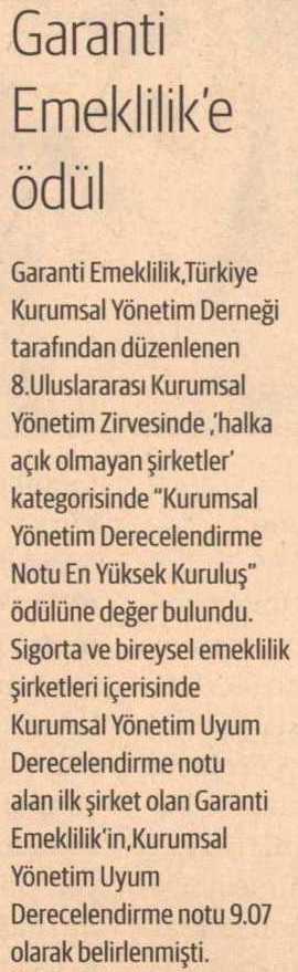 Garanti Emeklilik’e Ödül Dünya, 28 Ocak 2015