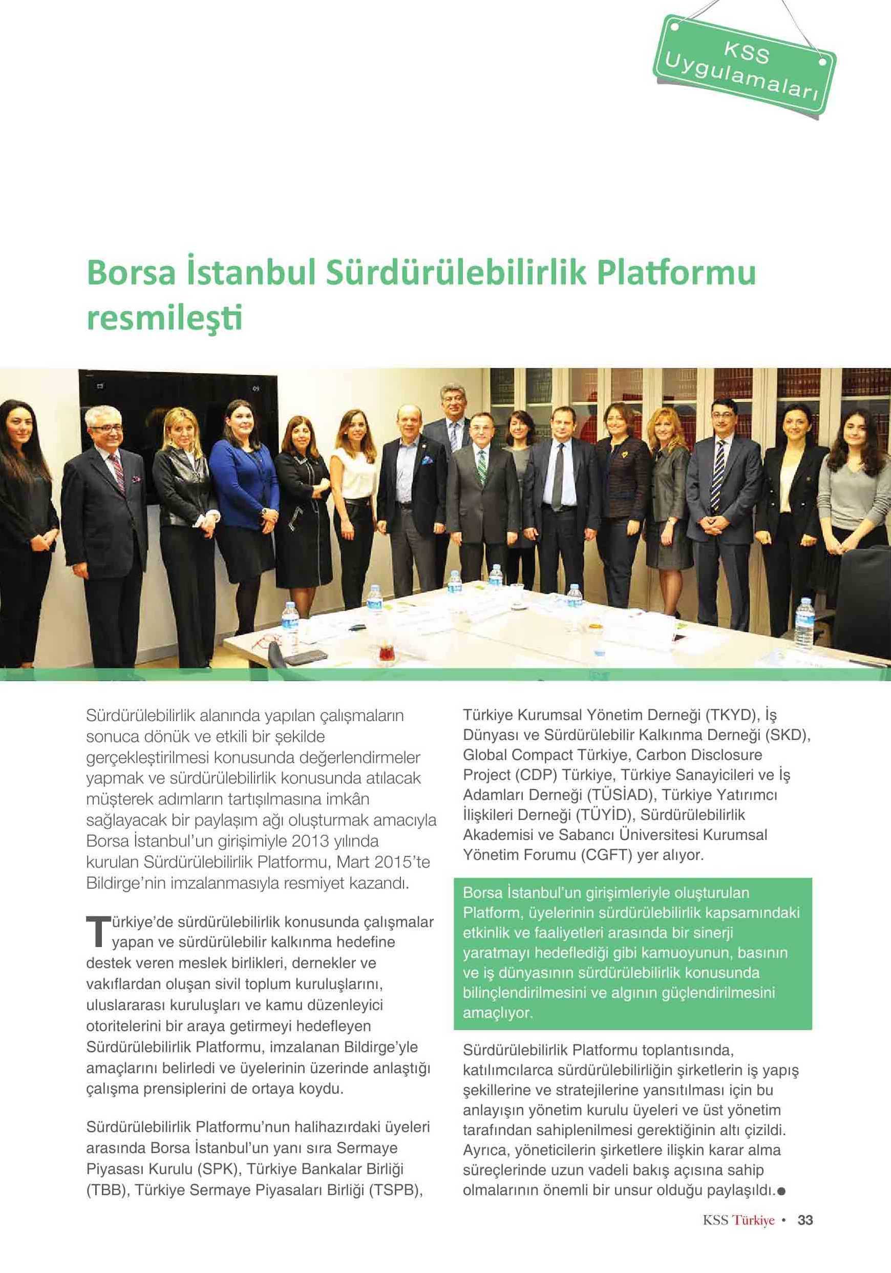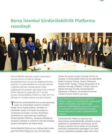 Borsa İstanbul Sürdürülebilirlik Platformu Resmileşti KSS Türkiye, Mart 2015