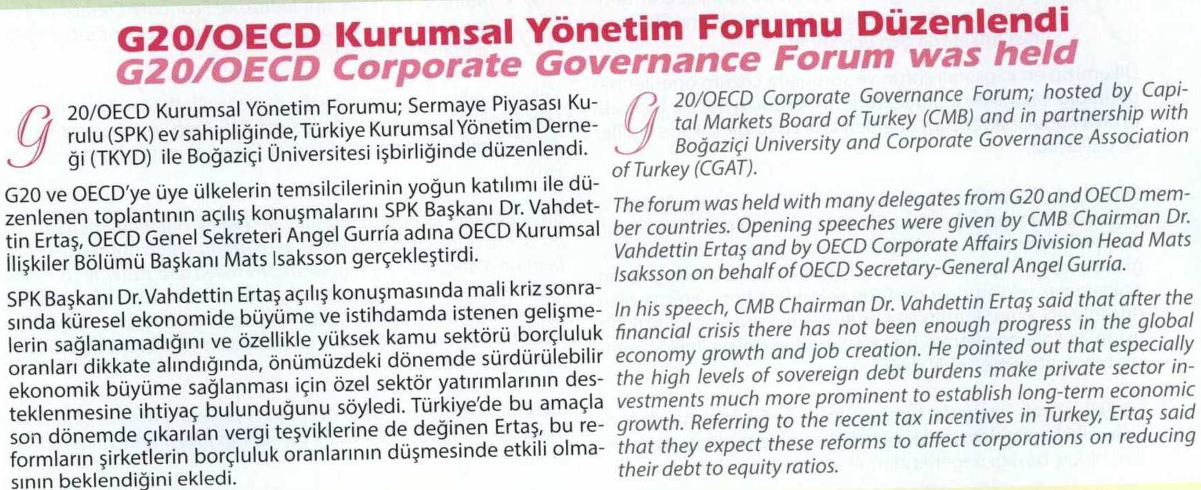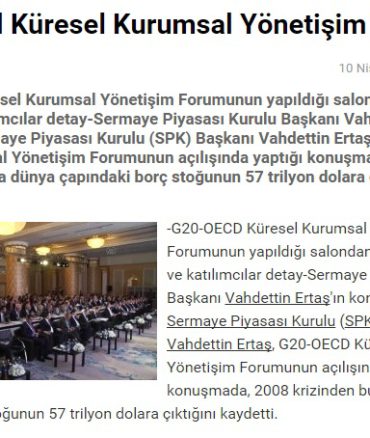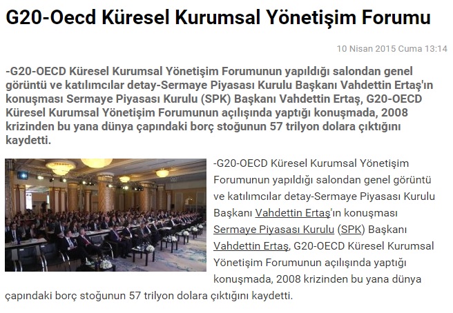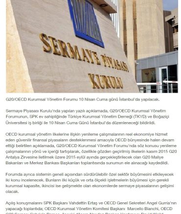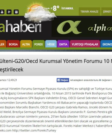 G20/OECD Kurumsal Yönetim Forumu İstanbul’da Gerçekleştirilecek Fortuneturkey.com, 8 Nisan 2015