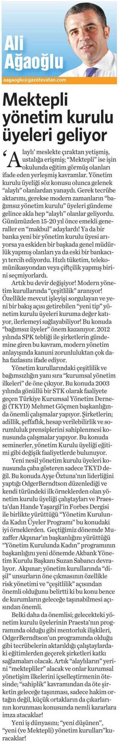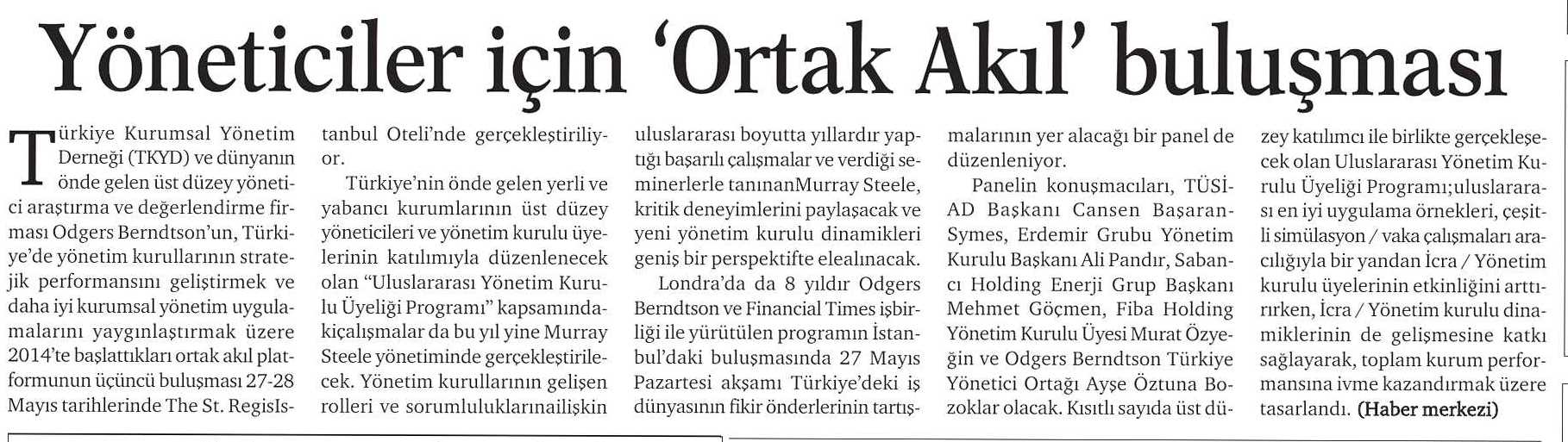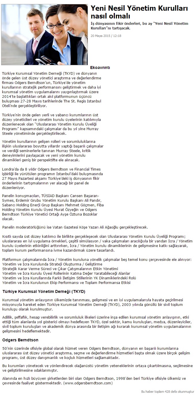 Yeni Nesil Yönetim Kurulları Nasıl Olmalı Ekoayrıntı.com, 20 Mayıs 2015