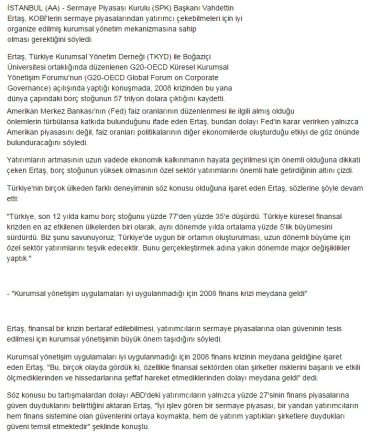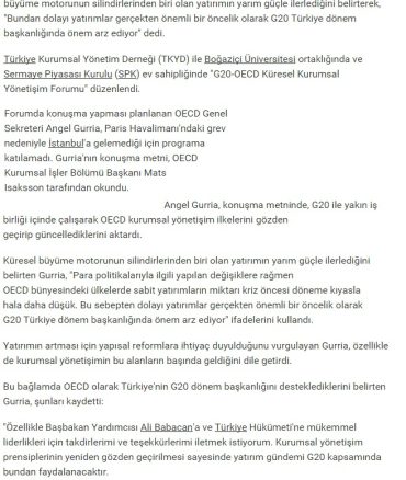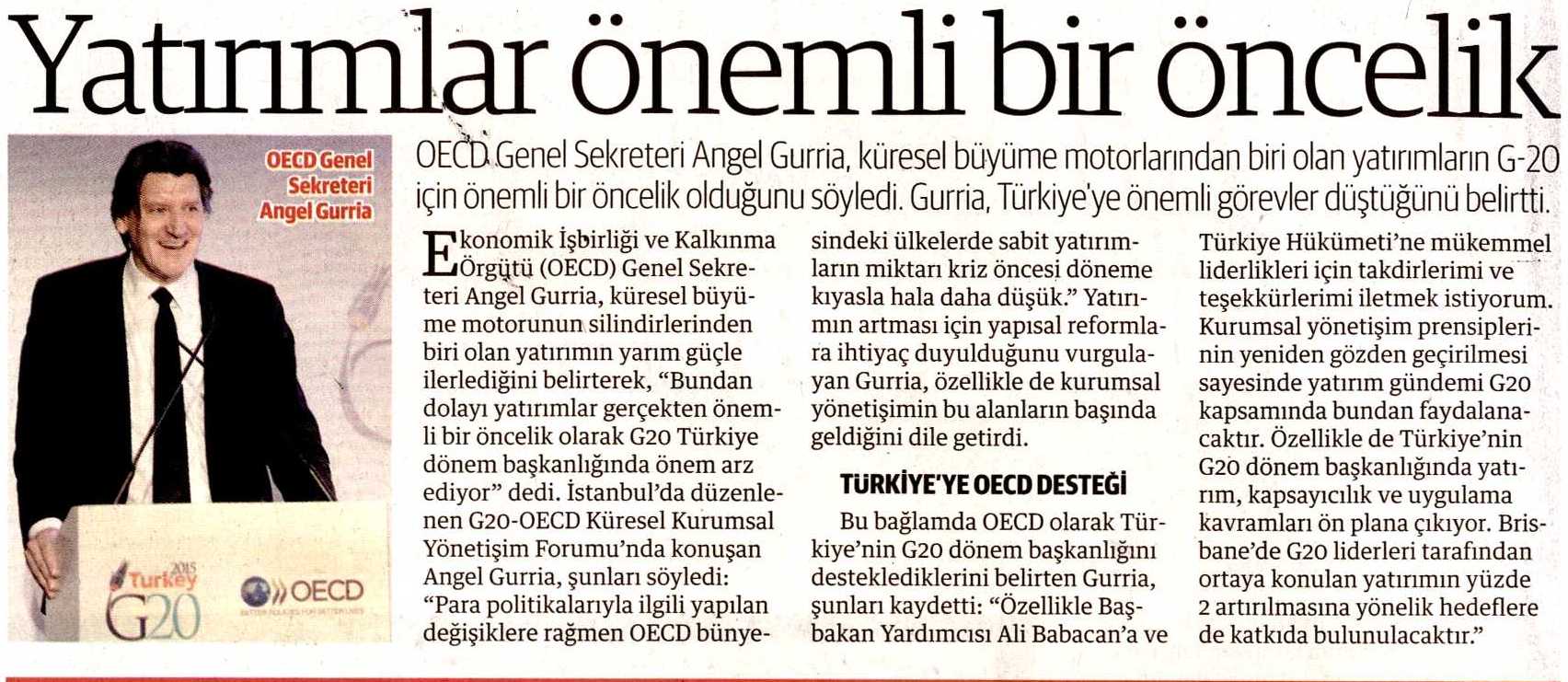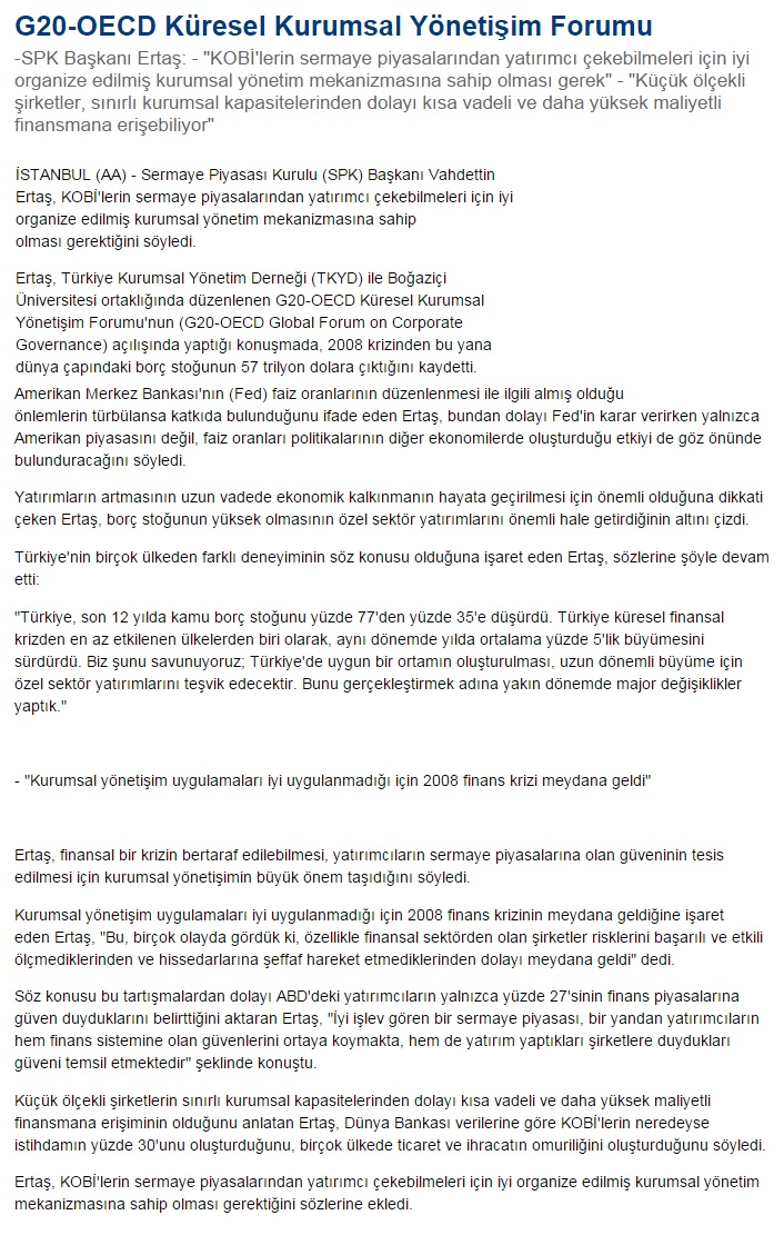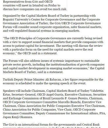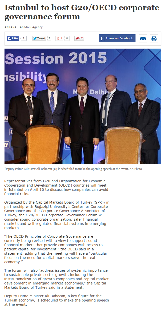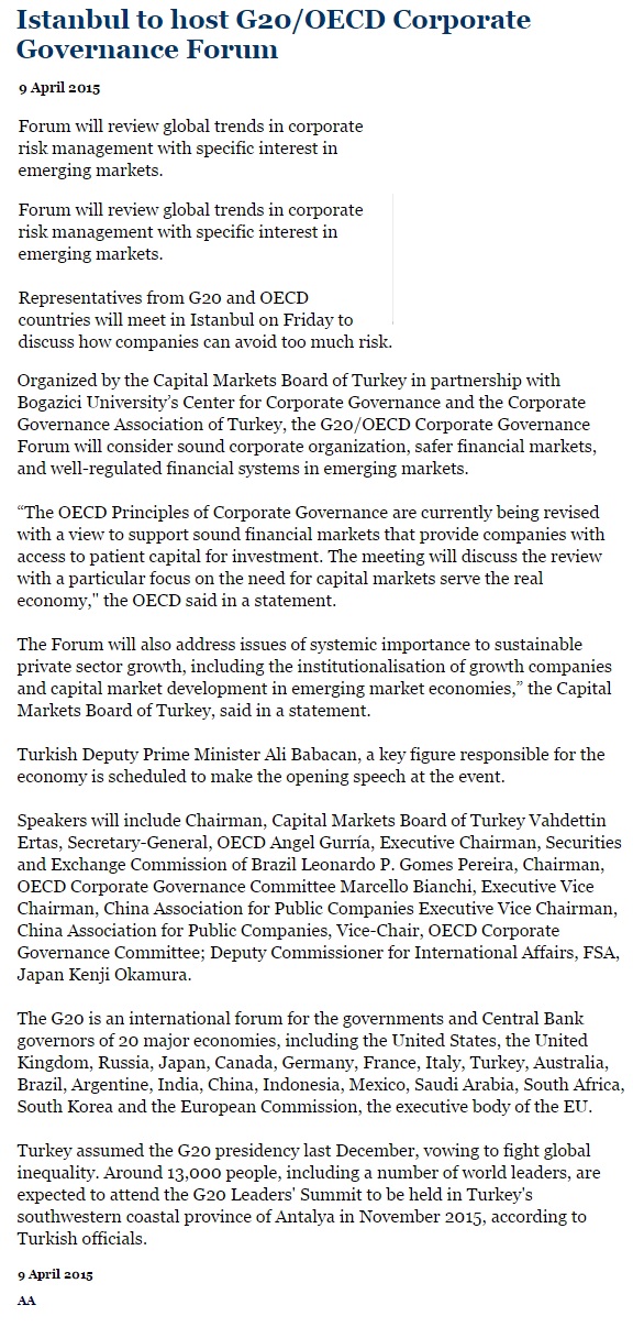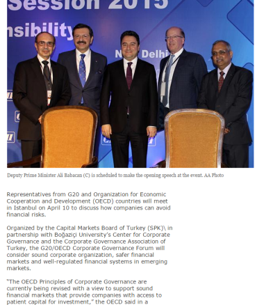İstanbul To Host G20/OECD Corporate Governance Forum Hürriyetdailynews.com, 9 Nisan 2015