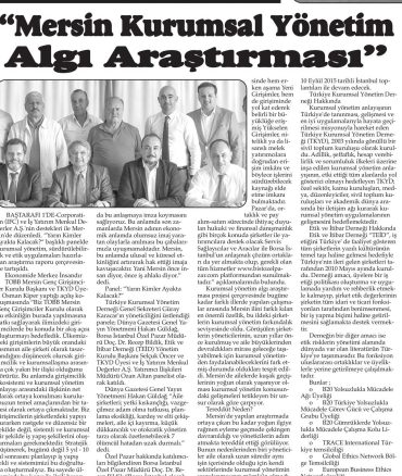 “Mersin Kurumsal Yönetim Algı Araştırması” Tarsus Ekspres Gazetesi, 13 Haziran 2015