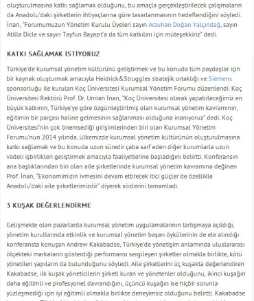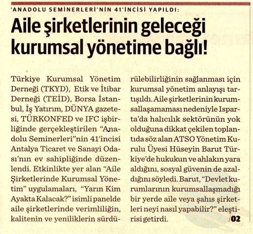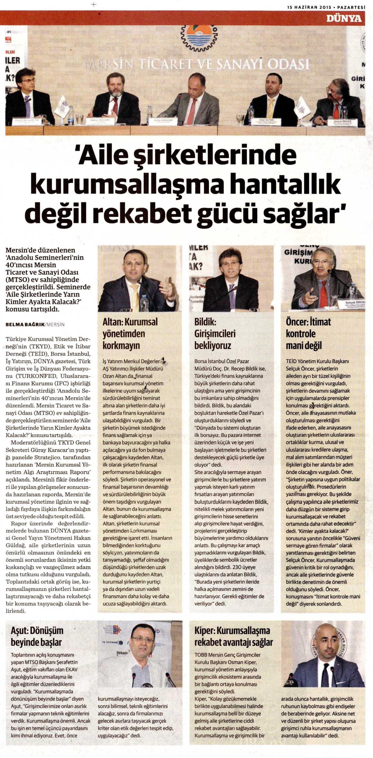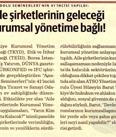 ‘Aile Şirketlerinde Kurumsallaşma Hantallık Değil Rekabet Gücü Sağlar’ Dünya, 15 Haziran 2015