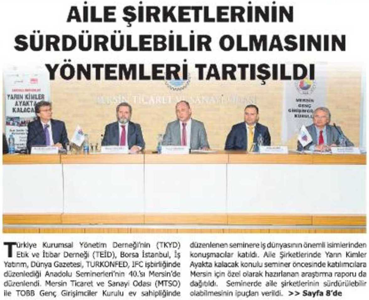 Mersin Kurumsal Yönetime Sıcak Ama Tereddütlü Haberci (Mersin), 16 Haziran 2015