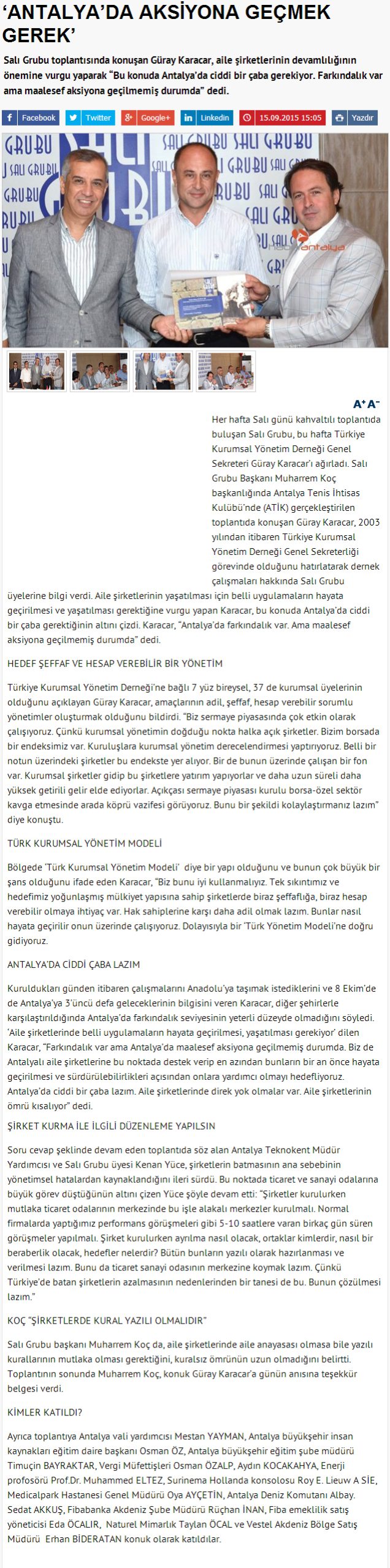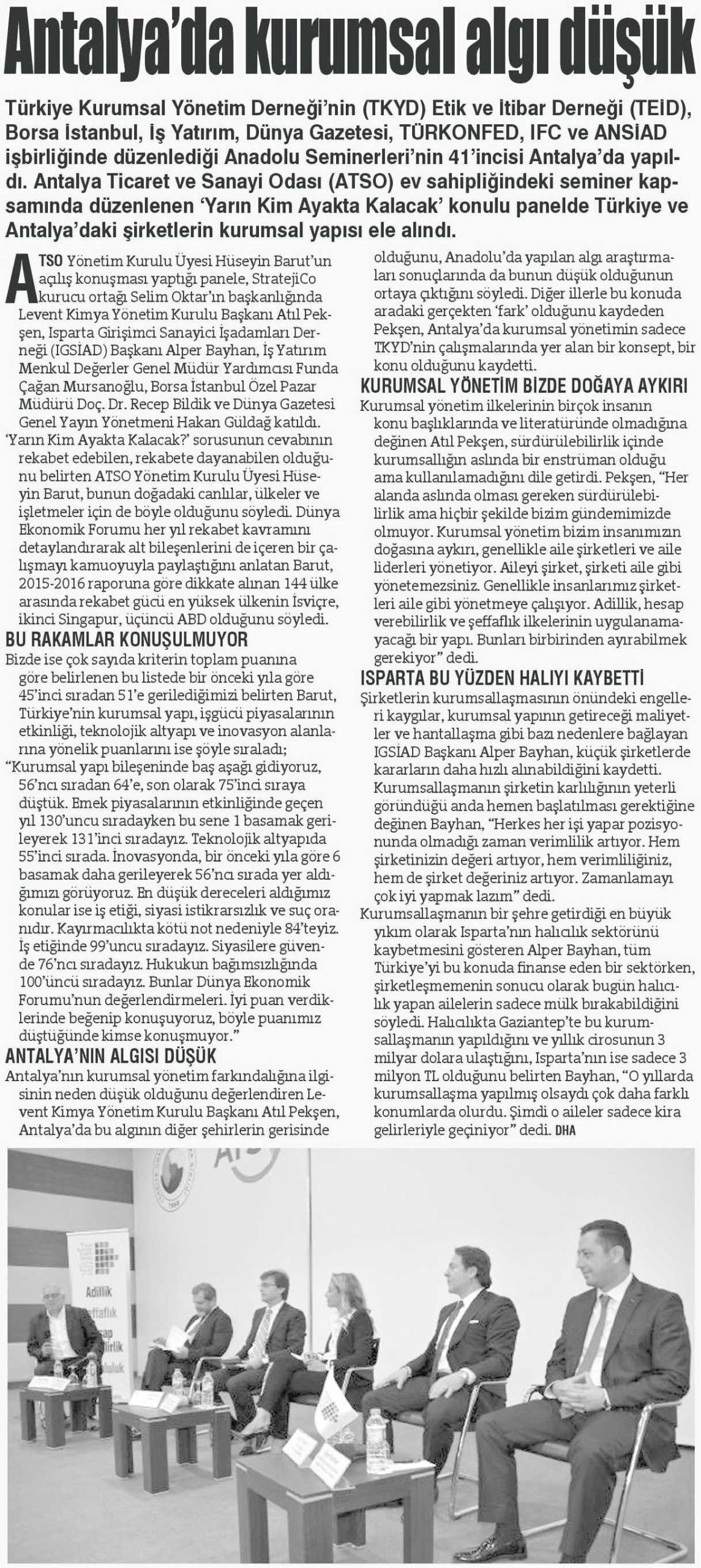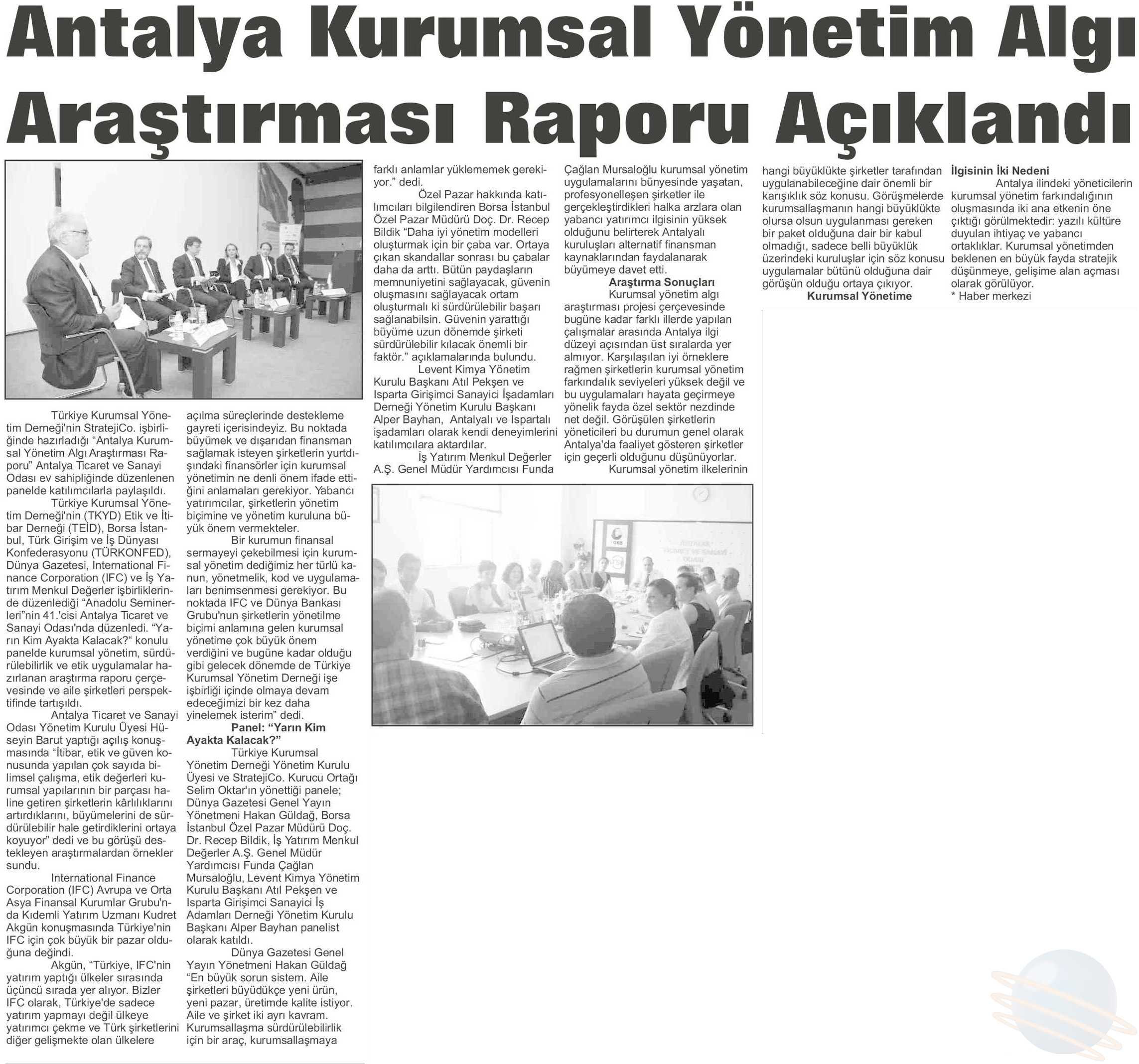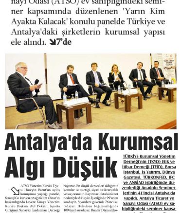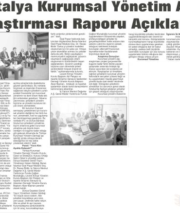 Antalya Kurumsal Yönetim Algı Araştırması Raporu Açıklandı Antalya Akdeniz Güncel, 11 Ekim 2015