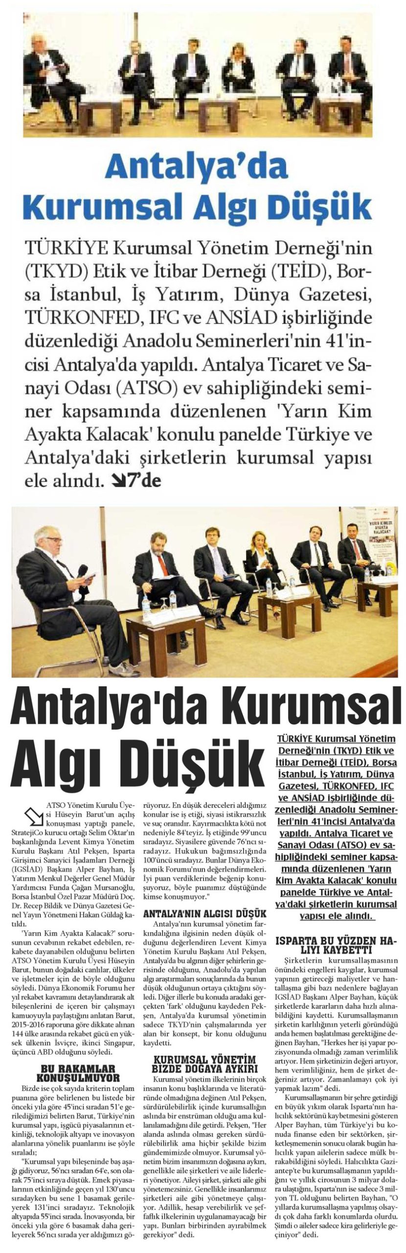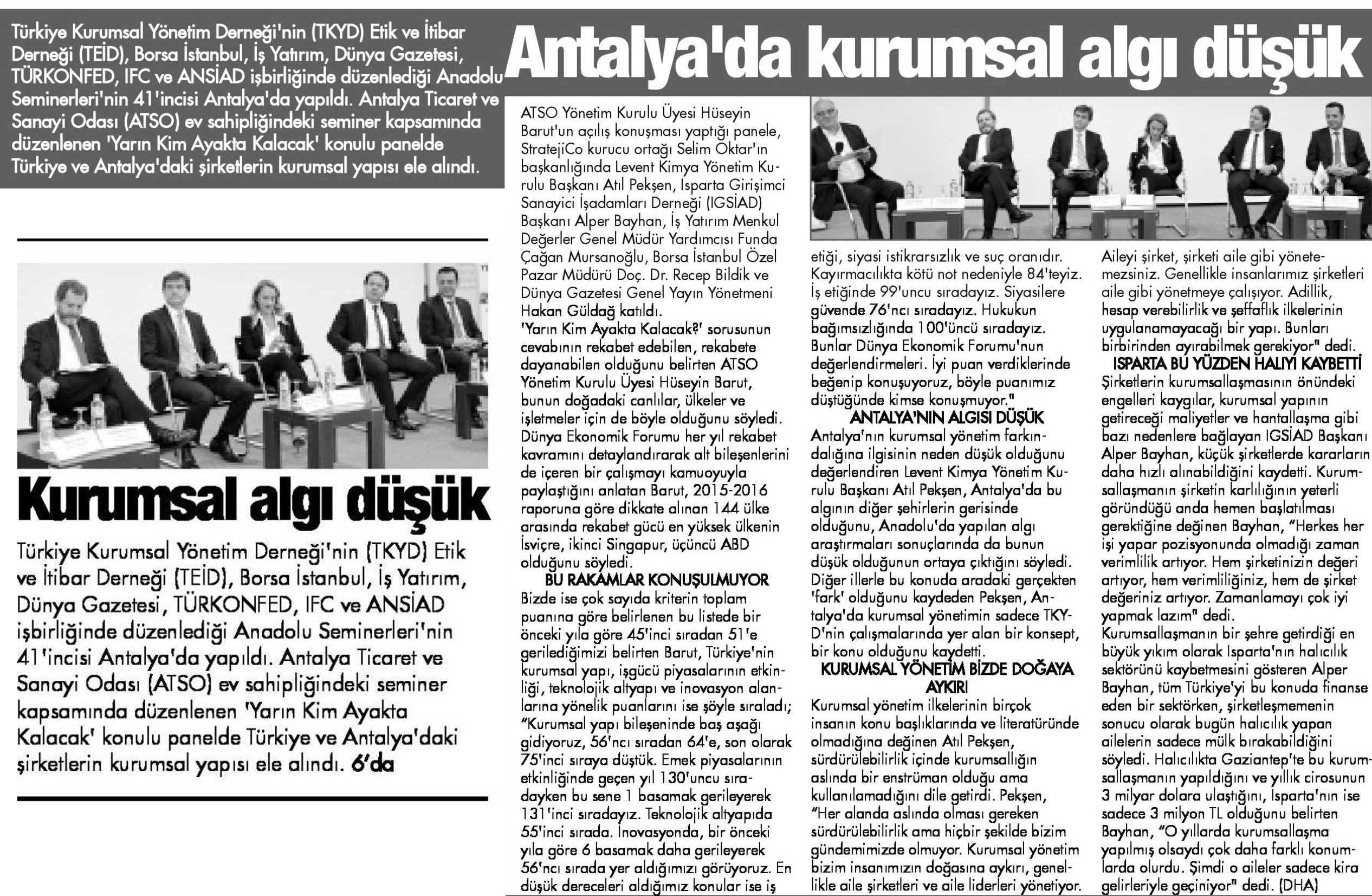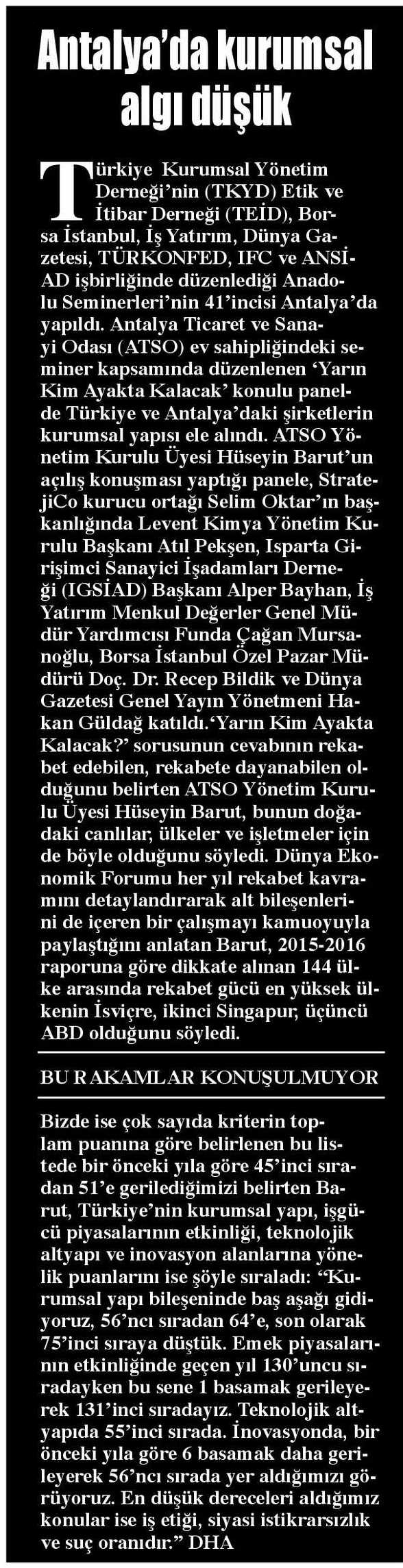 Antalya Kurumsal Yönetim Algı Araştırması Raporu Açıklandı Antalya Akdeniz Güncel, 11 Ekim 2015