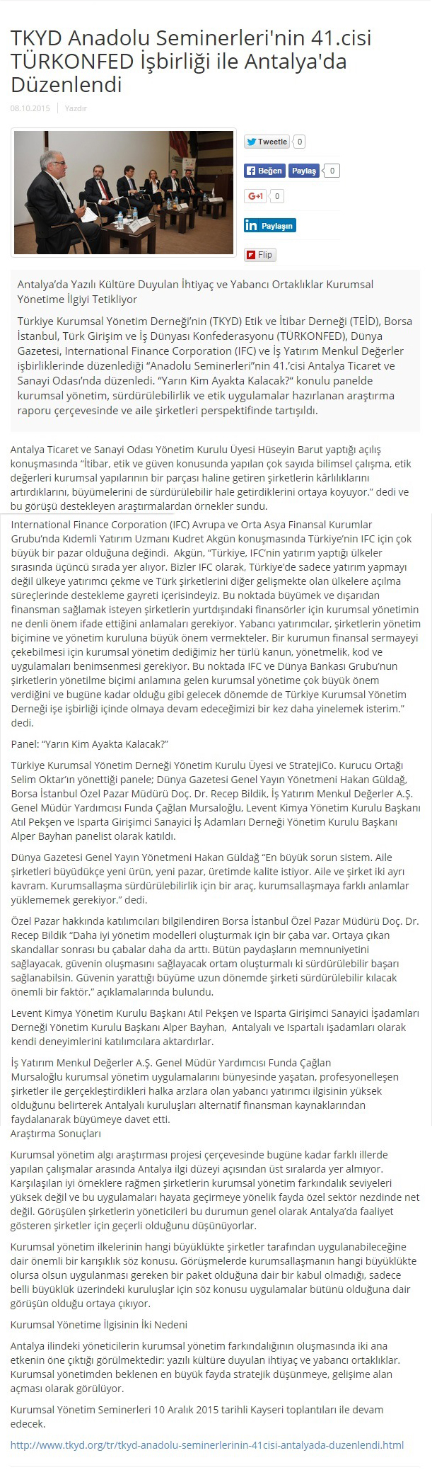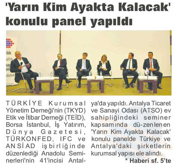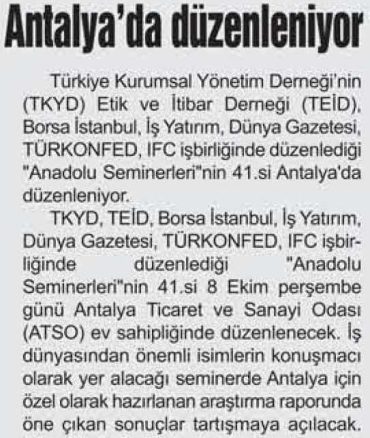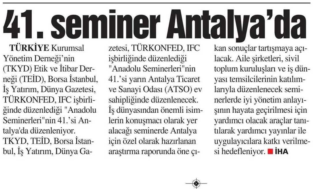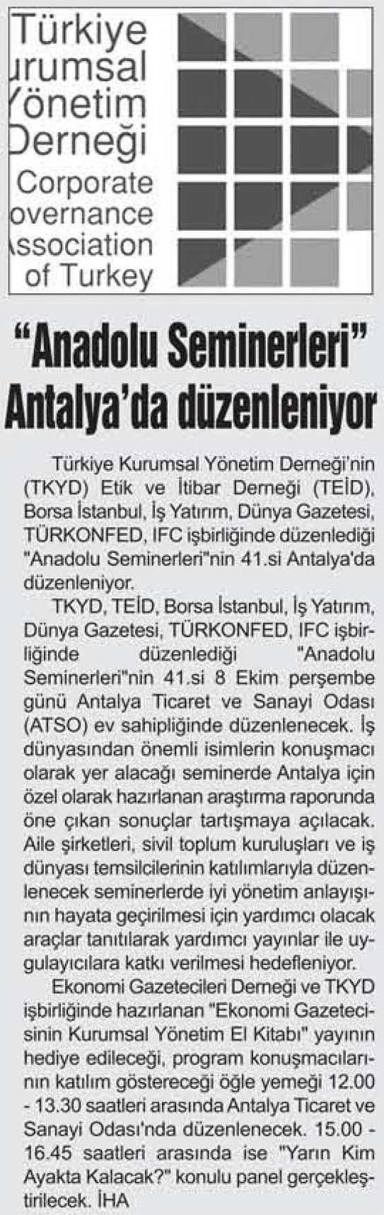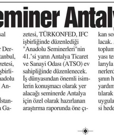 “Anadolu Seminerleri” nin 41.si Antalya’da düzenleniyor. Milliyet 07 Ekim 2015