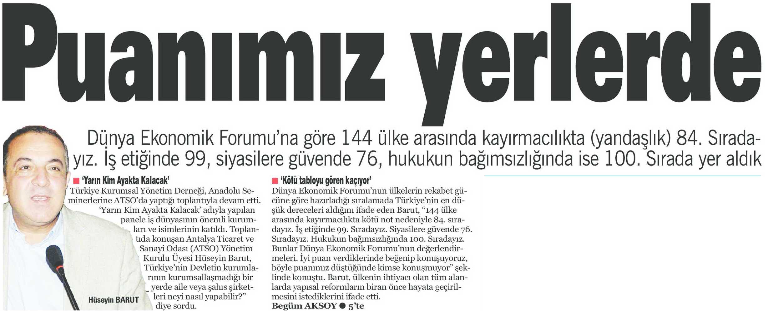 Antalya’da Kurumsal Algı Düşük Antalya’ da Yeni Yüzyıl, 10 Ekim 2015