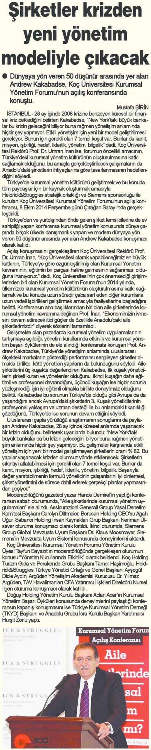Şirketler Krizden Yeni Yönetim Modeliyle Çıkacak. sondakika.com, 10 Ekim 2015