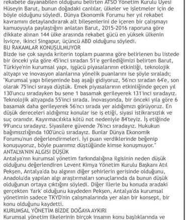 Antalya’da Kurumsal Algı Düşük Kaş Aydın Haber Gazetesi, 10 Ekim 2015