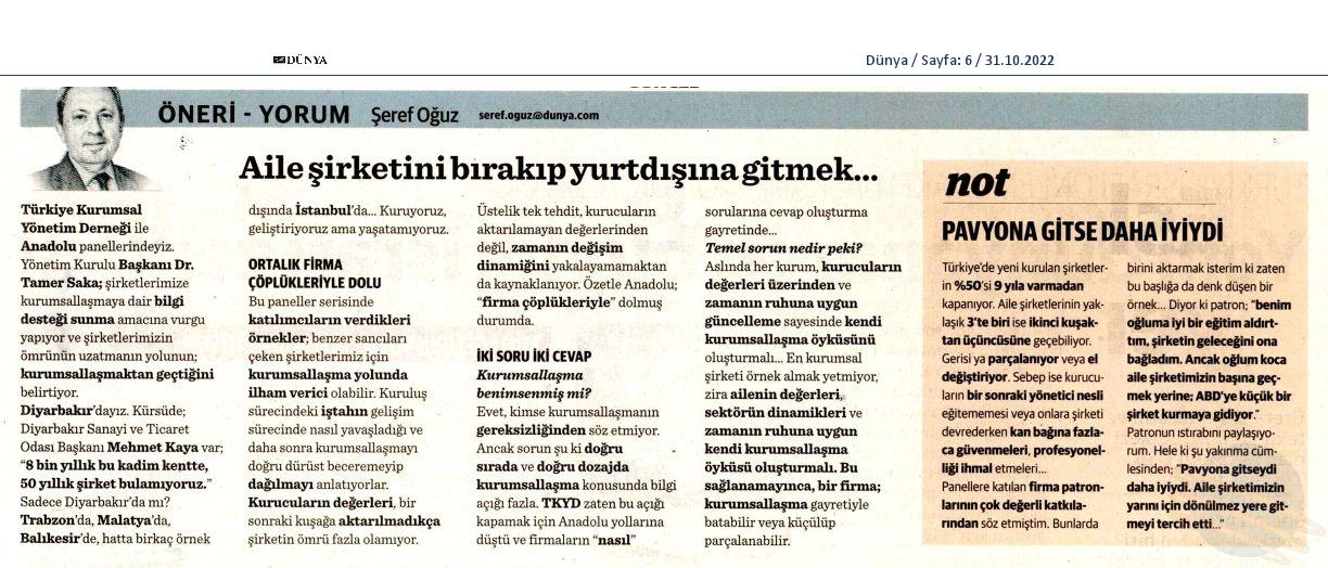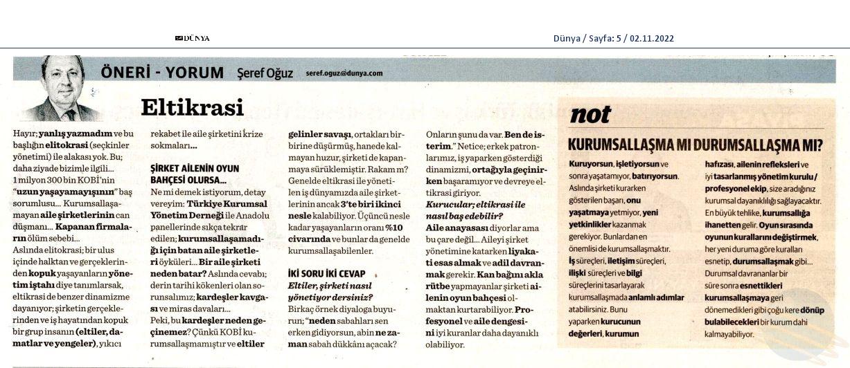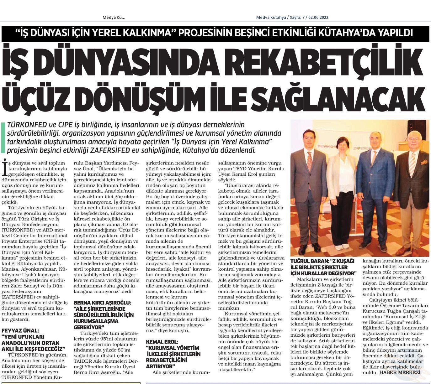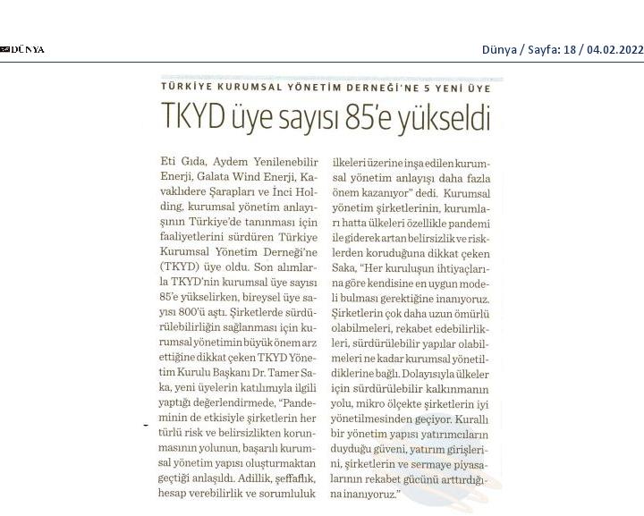 Türkiyede İş Dünyası, 2 Şubat 2022