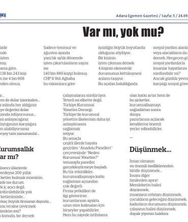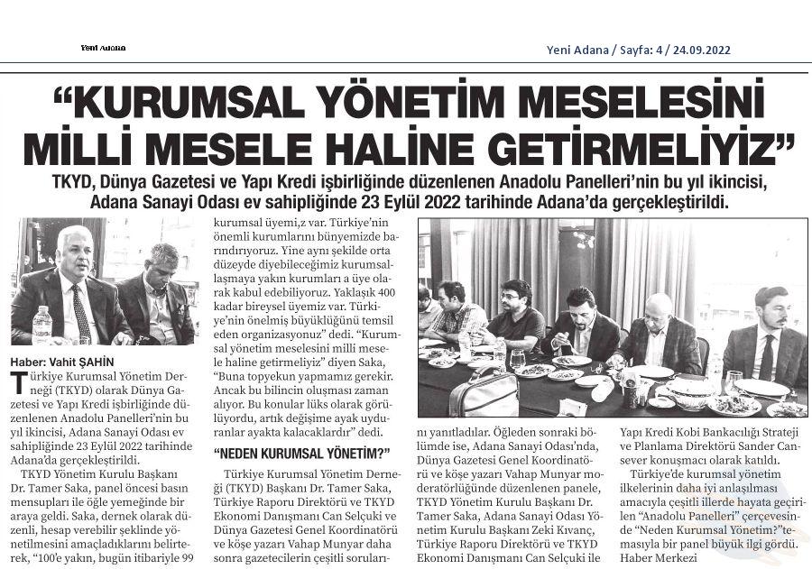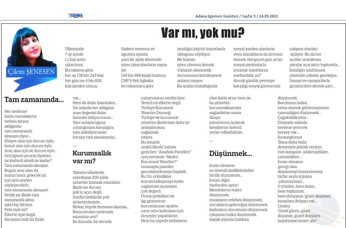 Adana Egemen Gazetesi, 24 Eylül 2022