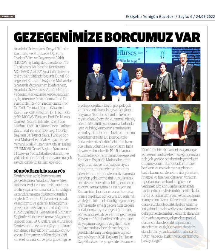 Eskişehir Yenigün Gazetesi, 24 Eylül 2022