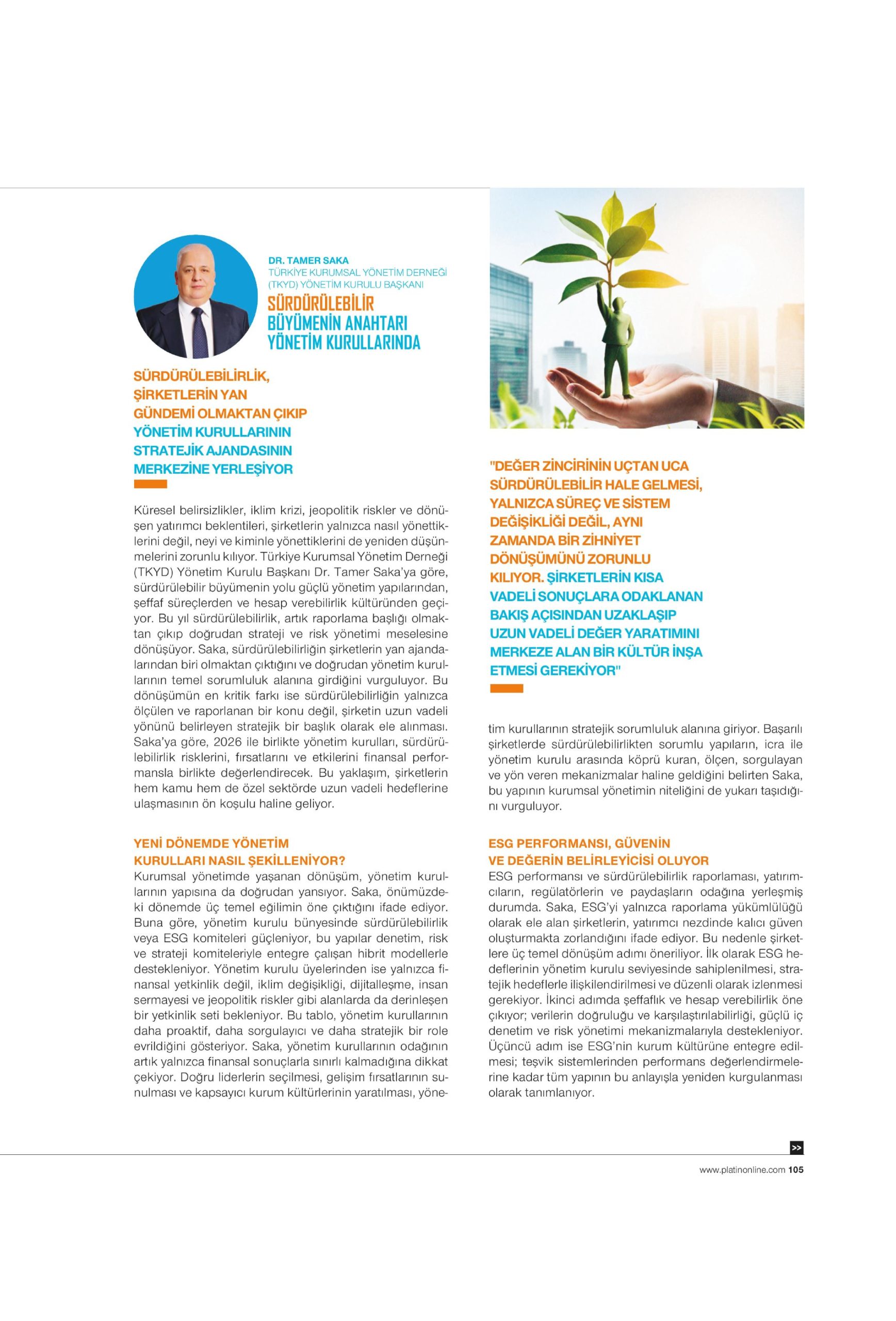 “Sürdürülebilir Büyümenin Anahtarı Yönetim Kurullarında” Platin 01 Ocak 2026